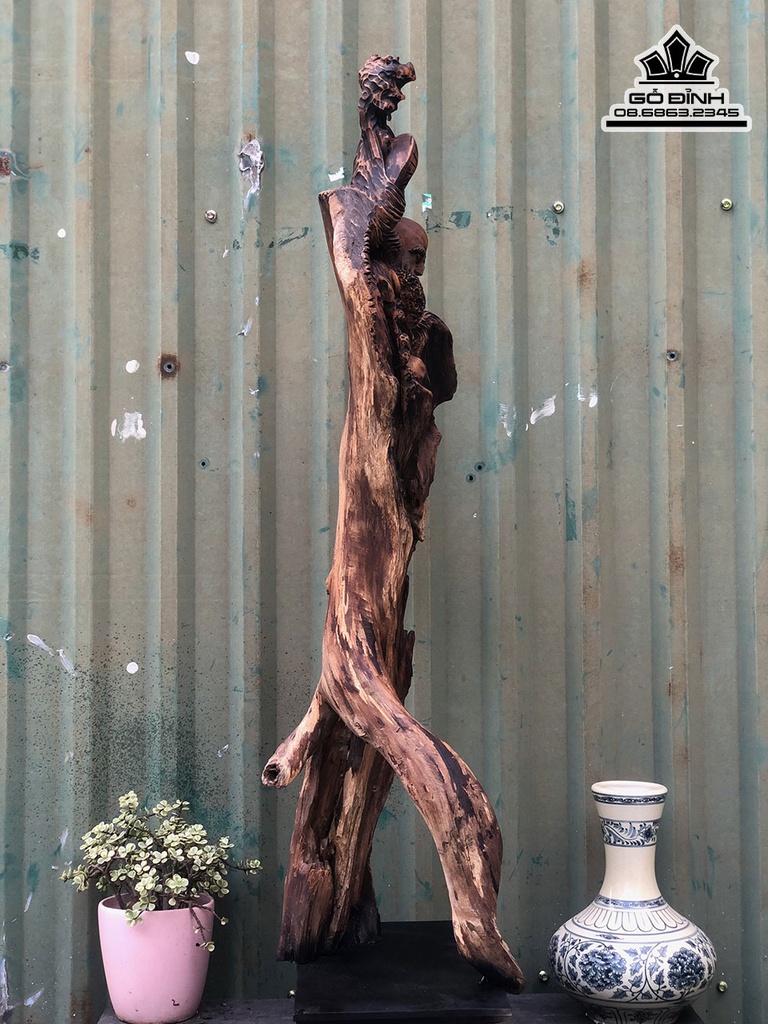 Tượng Đạt Ma Sư Tổ Gỗ Bách Xanh Cao 91 Ngang 33 Sâu 24 (cm)