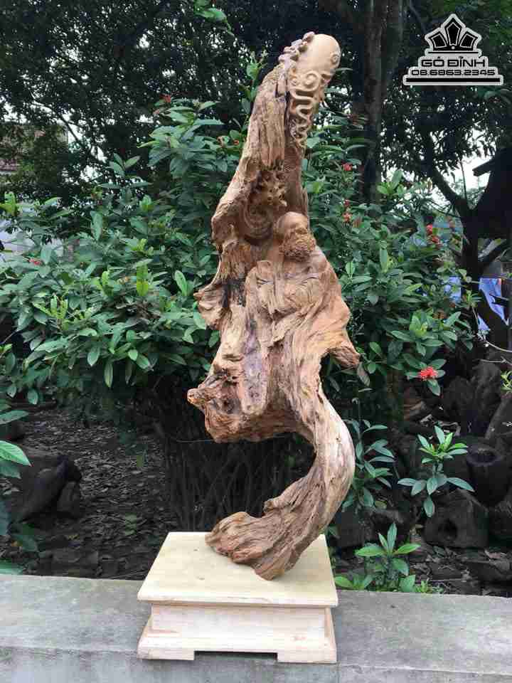 Tượng Đạt Ma Sư Tổ Gỗ Bách Xanh Cao 99 Ngang 30 Sâu 30 (cm)
