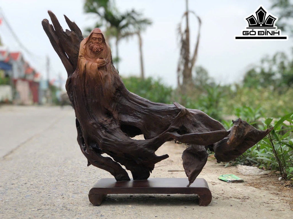 Tượng Đạt Ma Sư Tổ Gỗ Đinh Hương Cao 56 Ngang 59 Sâu 23 (cm)