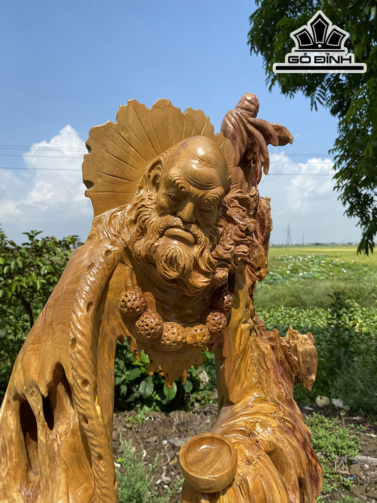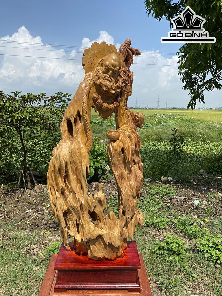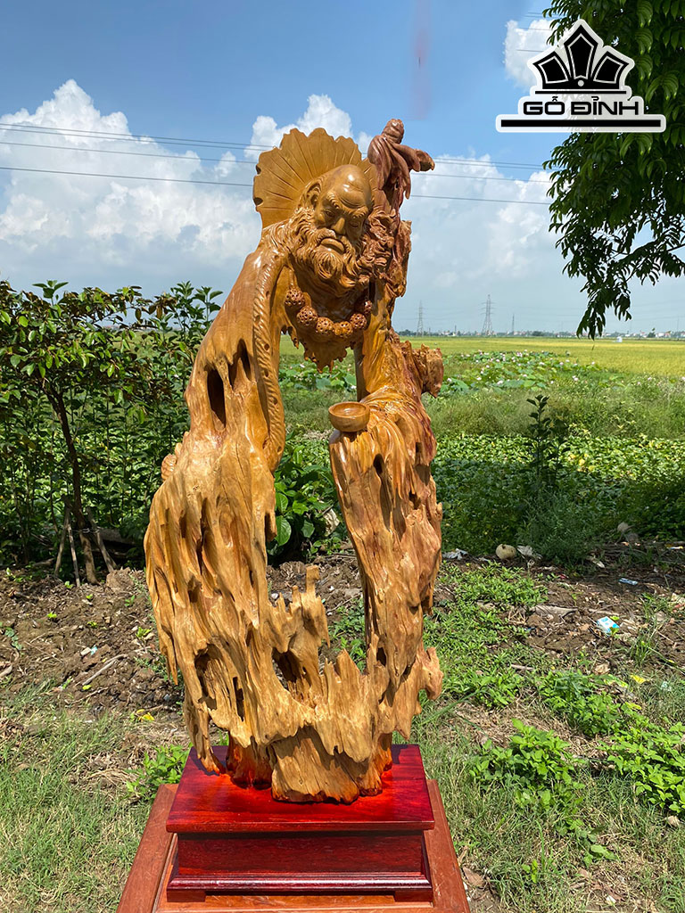 Tượng Đạt Ma Sư Tổ Gỗ Dổi Cao 133 Ngang 55 Sâu 30 (cm)