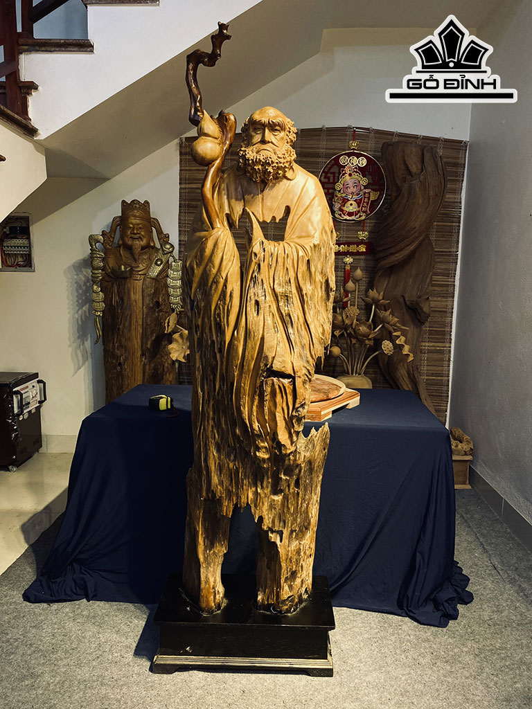 Tượng Đạt Ma Sư Tổ Gỗ Dổi Cao 172 Ngang 45 Sâu 20 (cm)