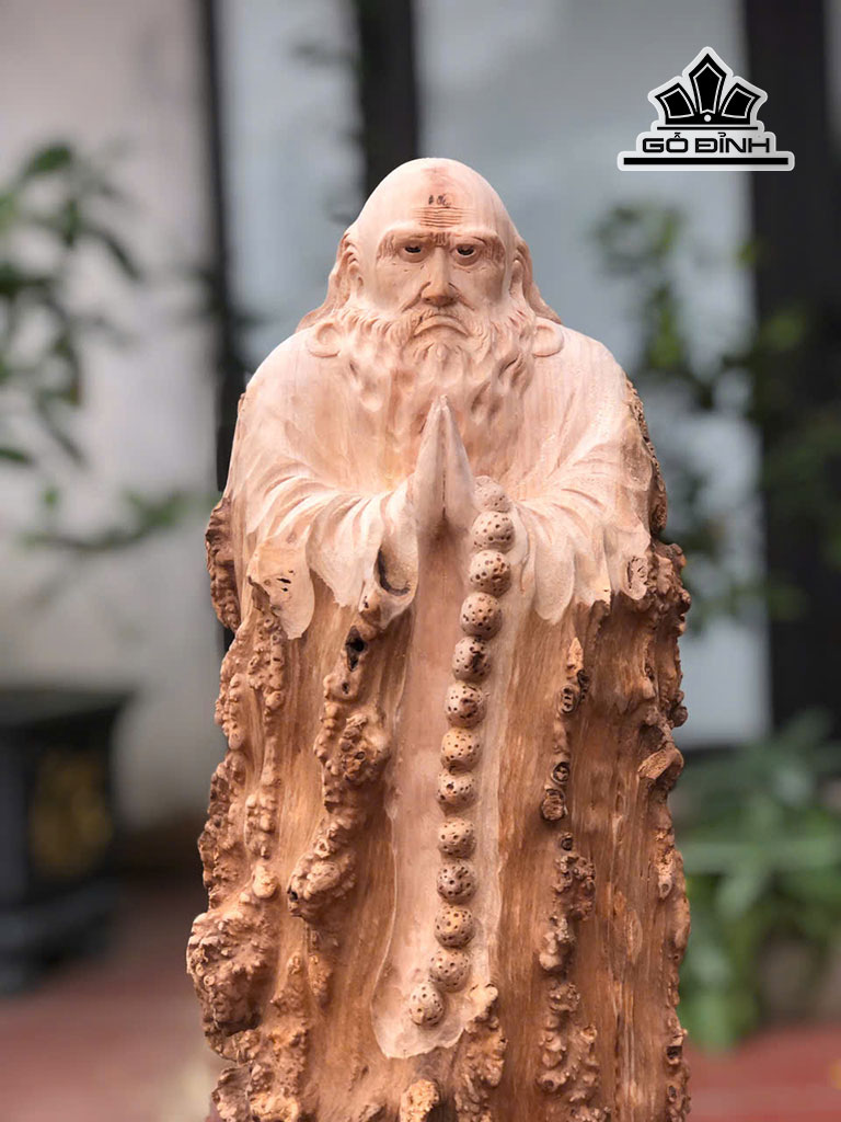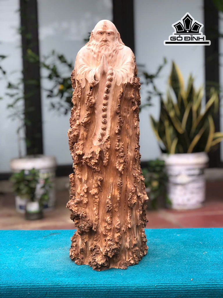 Tượng Đạt Ma Sư Tổ Gỗ Dổi Cao 56 Ngang 19 Sâu 19 (cm)