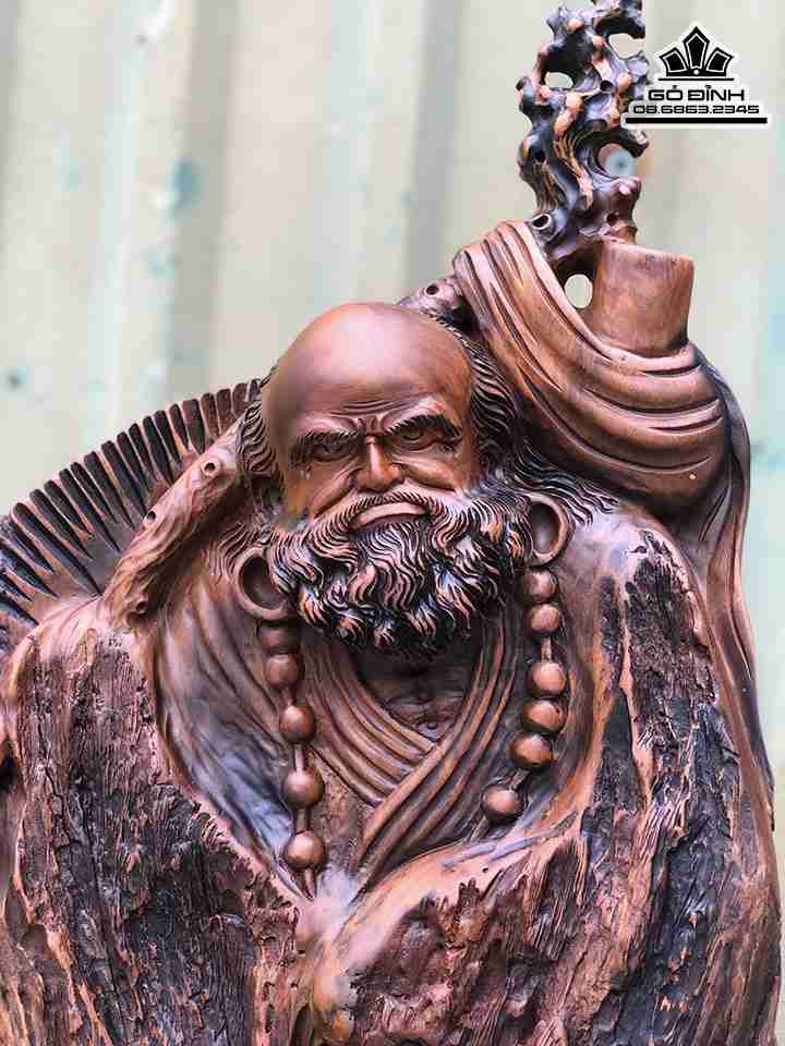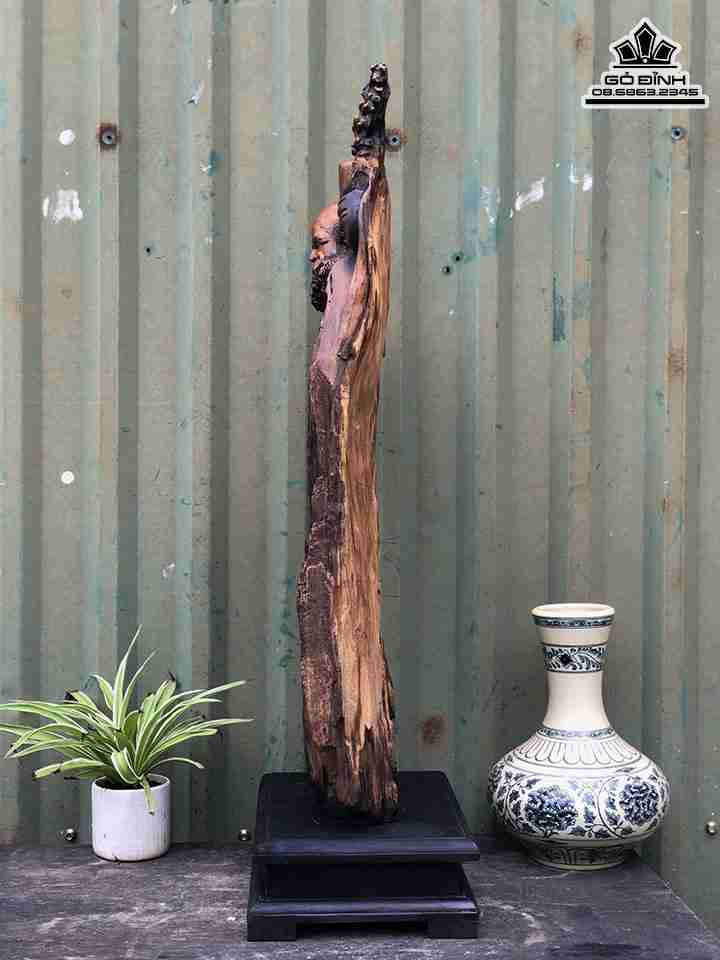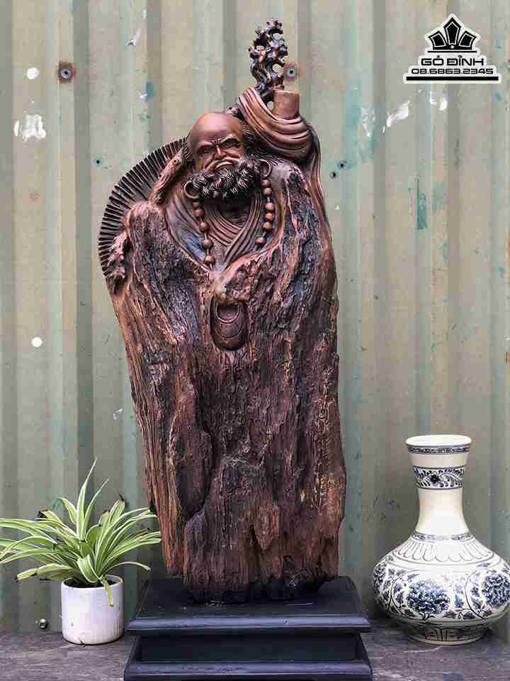 Tượng Đạt Ma Sư Tổ Gỗ Giáo Hóa Gỗ Lũa Bách Xanh Cao 68 Ngang 28 Sâu 10 (cm)