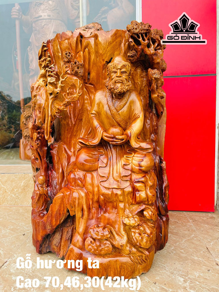 Tượng Đạt Ma Sư Tổ Gỗ Hương Cao 70 Ngang 46 Sâu 30 (cm)