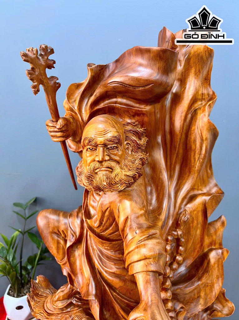 Tượng Đạt Ma Sư Tổ Gỗ Hương Cao 82 Ngang 45 Sâu 35 (cm)