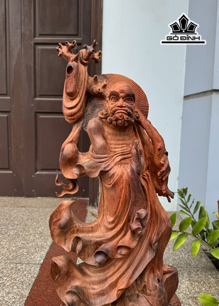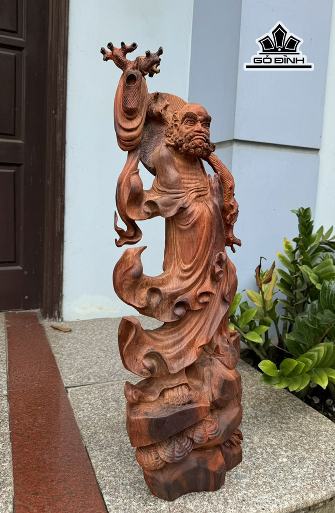 Tượng Đạt Ma Sư Tổ Gỗ Hương Cao 84 Ngang 32 Sâu 17 (cm)