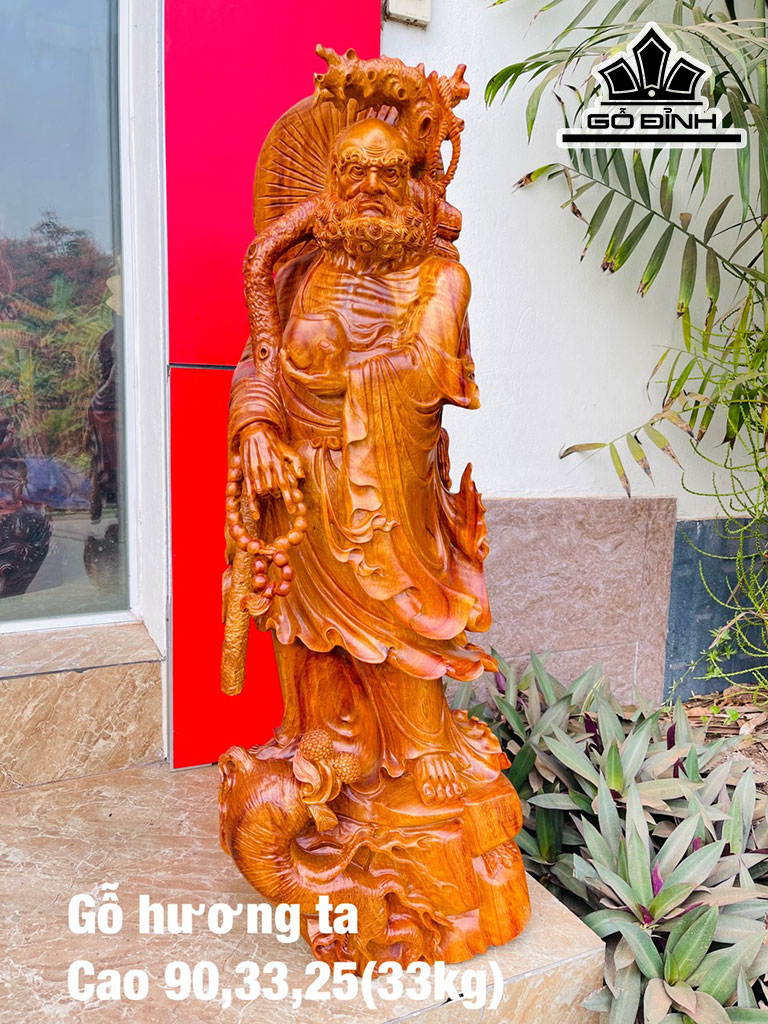 Tượng Đạt Ma Sư Tổ Gỗ Hương Cao 90 Ngang 33 Sâu 25 (cm)