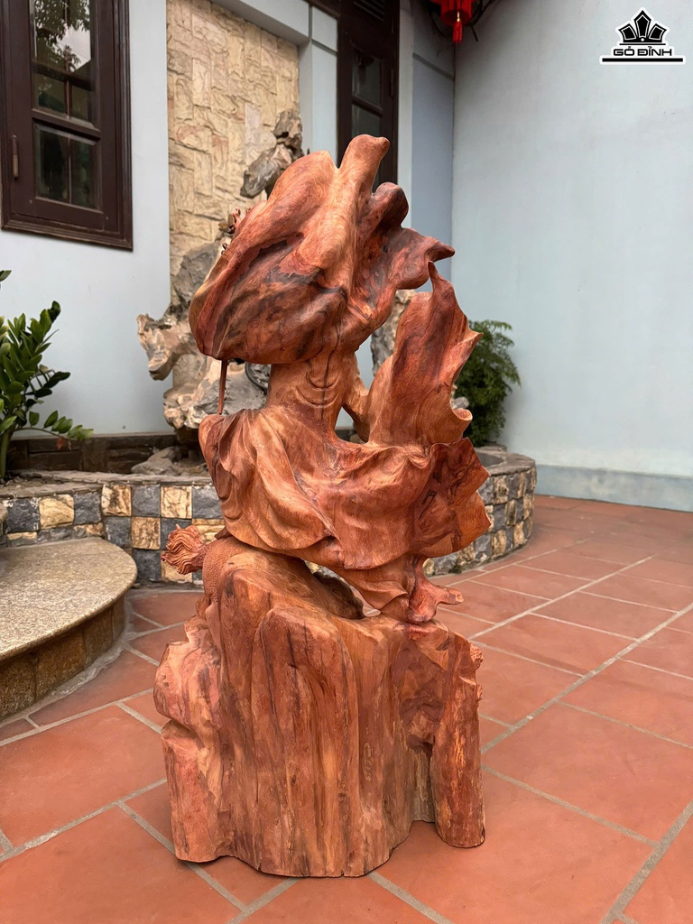 Tượng Đạt Ma Sư Tổ Gỗ Hương Cao 93 Ngang 45 Sâu 23 (cm)