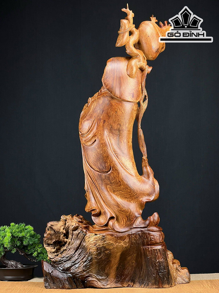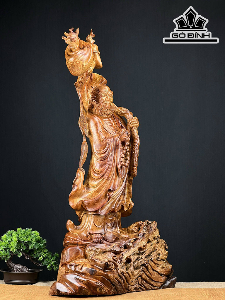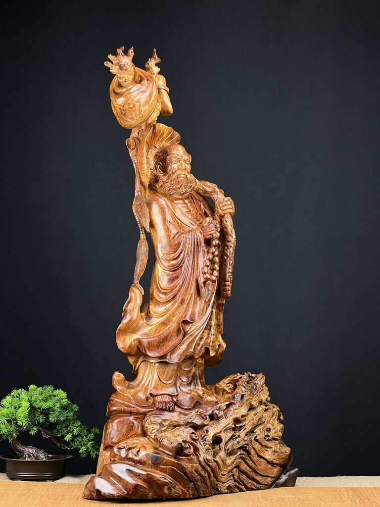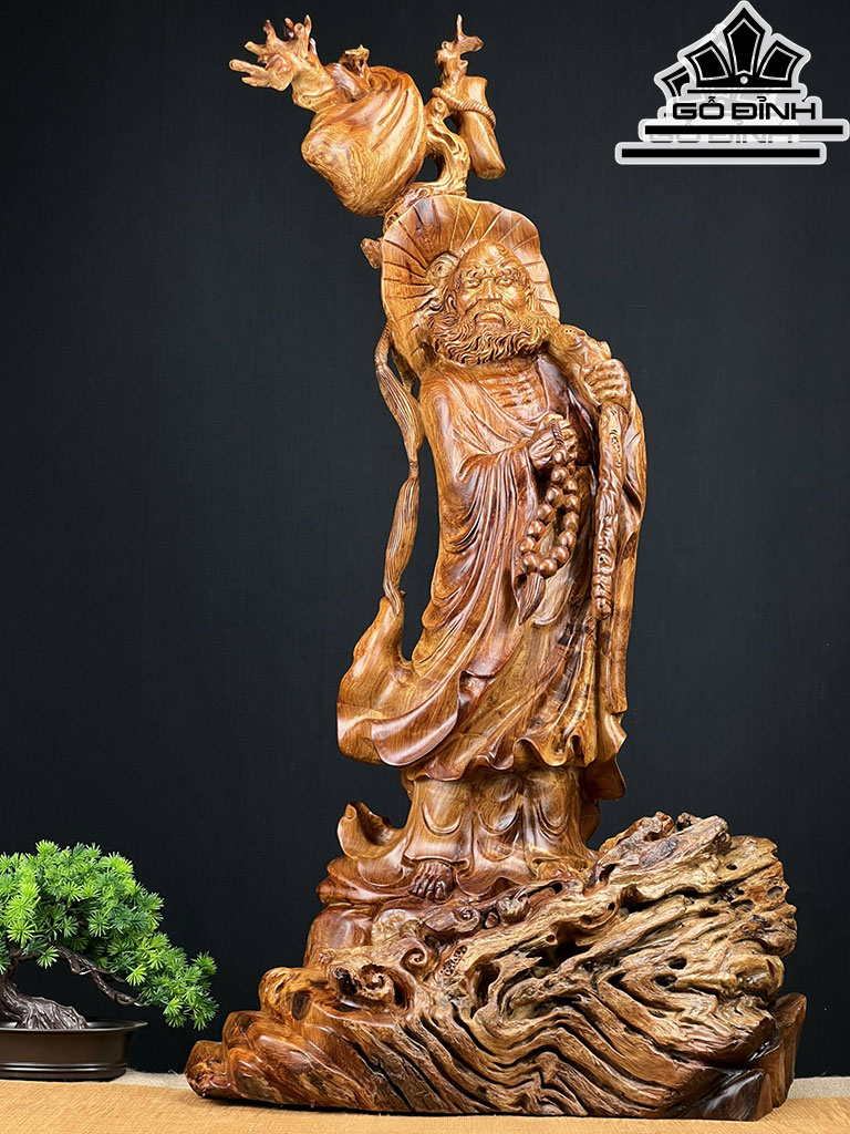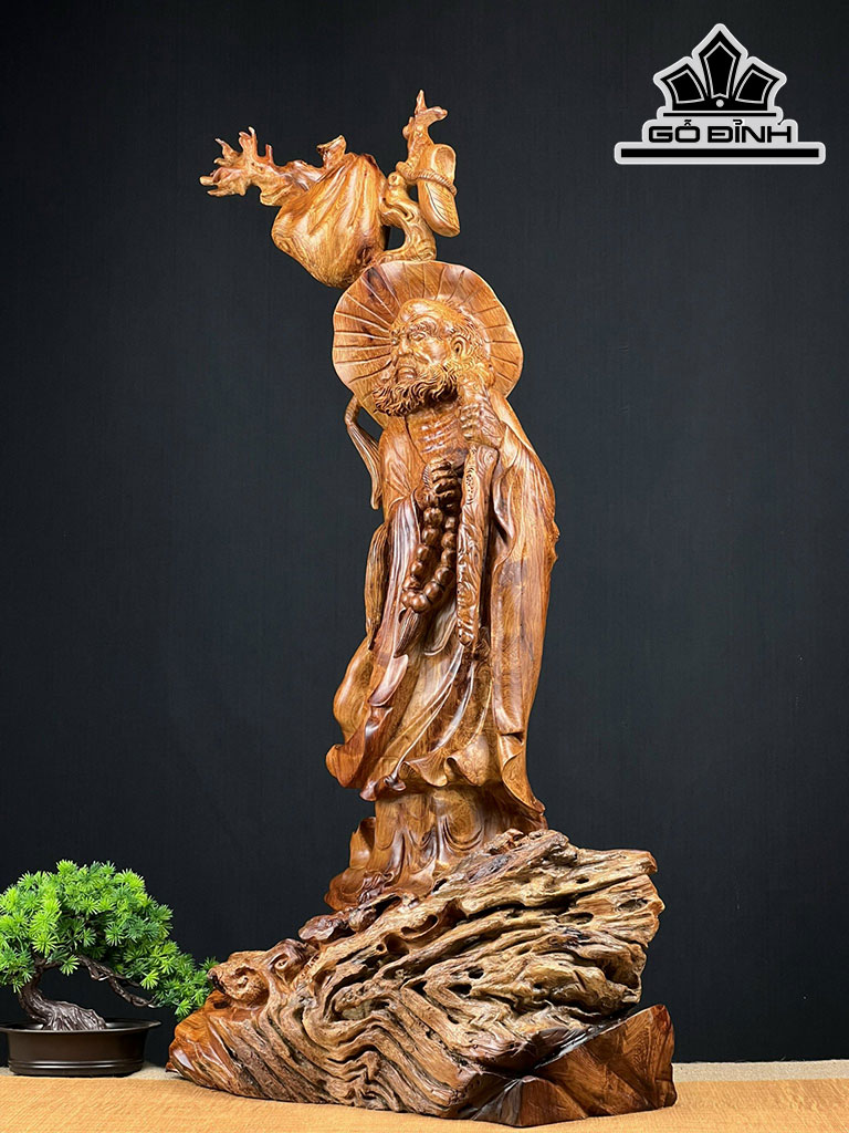 Tượng Đạt Ma Sư Tổ Gỗ Hương Cao 93 Ngang 48 Sâu 24 (cm)