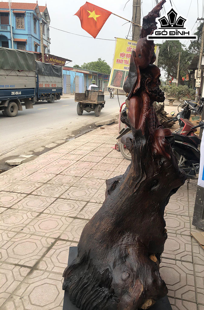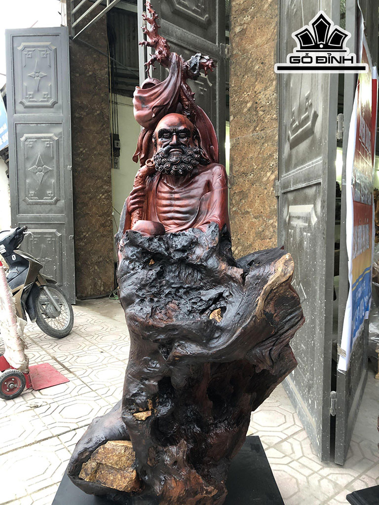 Tượng Đạt Ma Sư Tổ Gỗ Hương Ôm Đá Cao 162 Ngang 82 Sâu 70 (cm)