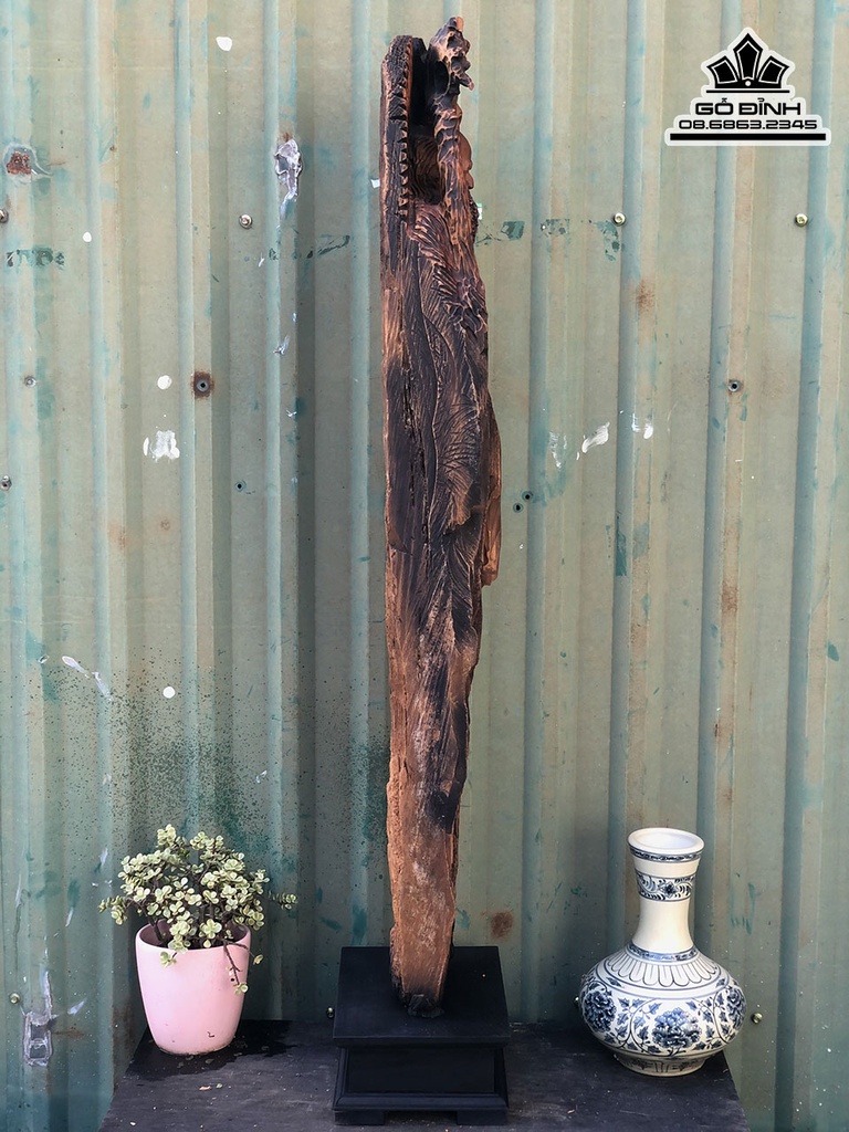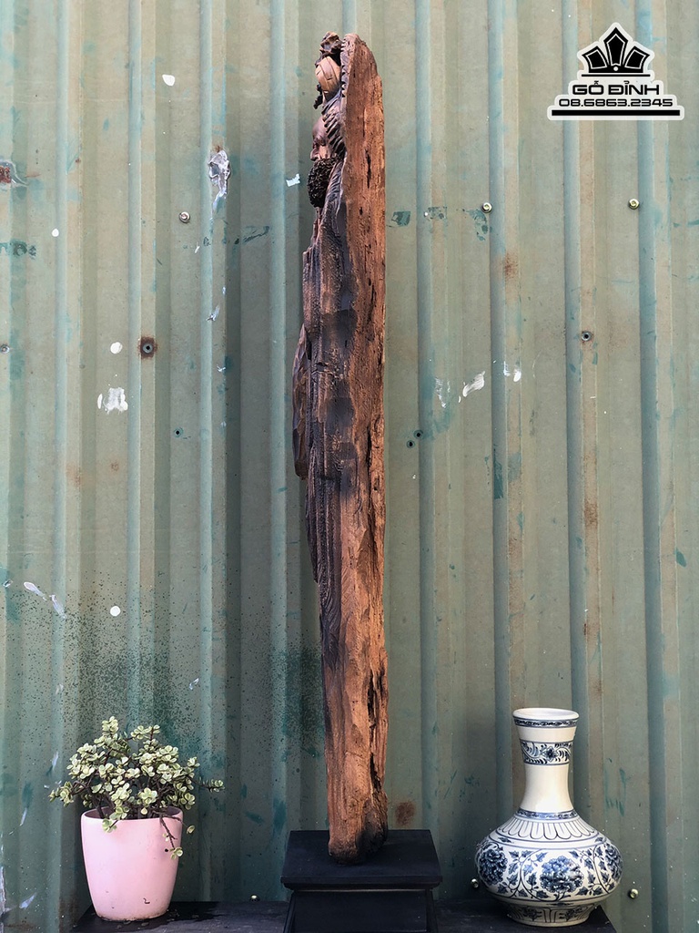 Tượng Đạt Ma Sư Tổ Gỗ Lũa Bách Xanh Cao 101 Ngang 20 Sâu 12 (cm)