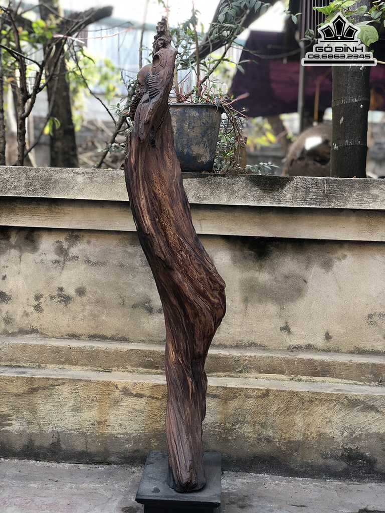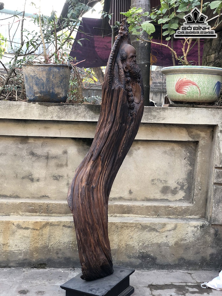 Tượng Đạt Ma Sư Tổ Gỗ Lũa Bách Xanh Cao 101 Ngang 26 Sâu 13 (cm)