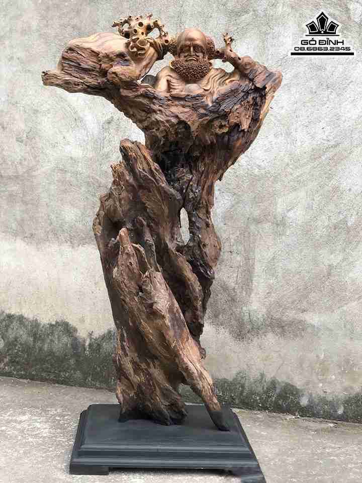 Tượng Đạt Ma Sư Tổ Gỗ Lũa Bách Xanh Cao 83 Ngang 48 Sâu 22 (cm)