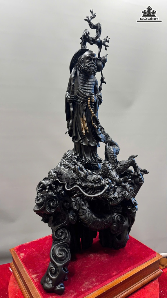Tượng Đạt Ma Sư Tổ Gỗ Mun Cao 90 Ngang 46 Sâu 36 (cm)