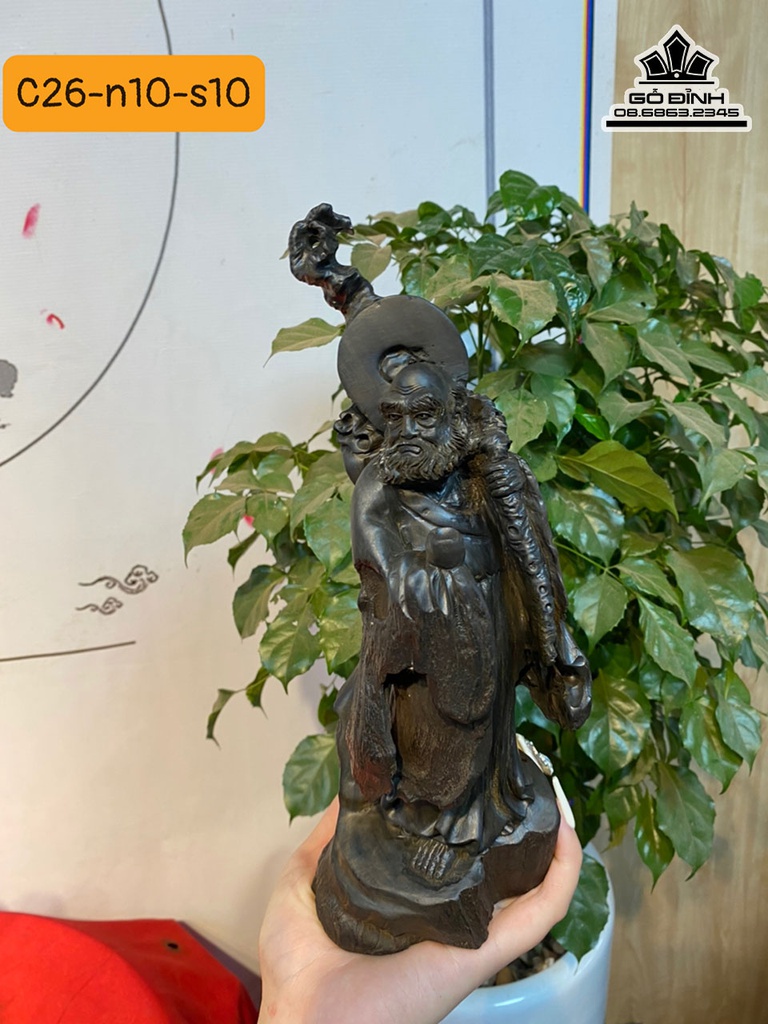 Tượng Đạt Ma Sư Tổ Gỗ Mun Sừng Cao 26 Ngang 10 Sâu 10 (cm)