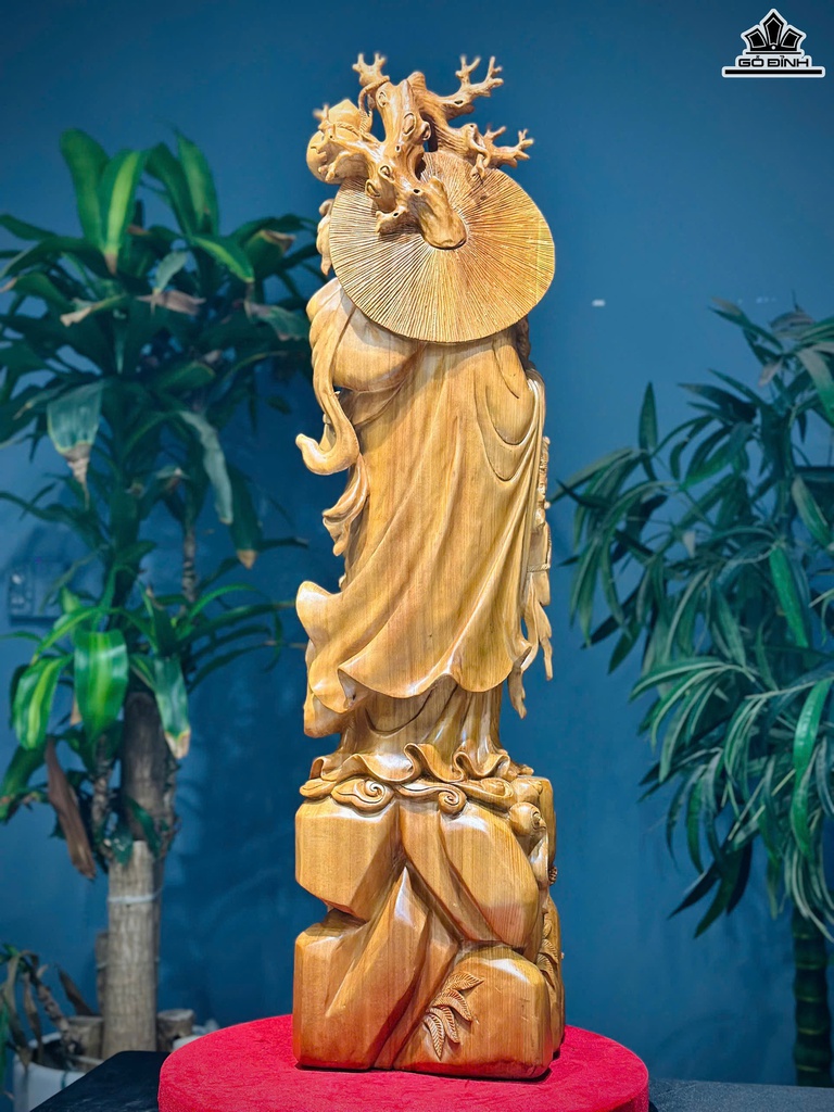 Tượng Đạt Ma Sư Tổ Gỗ Ngọc Am Cao 110 Ngang 26 Sâu 25 (cm)