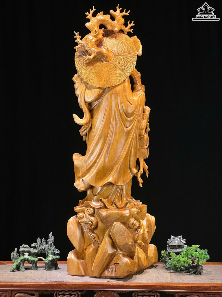 Tượng Đạt Ma Sư Tổ Gỗ Ngọc Am Cao 119 Ngang 41 Sâu 37 (cm)