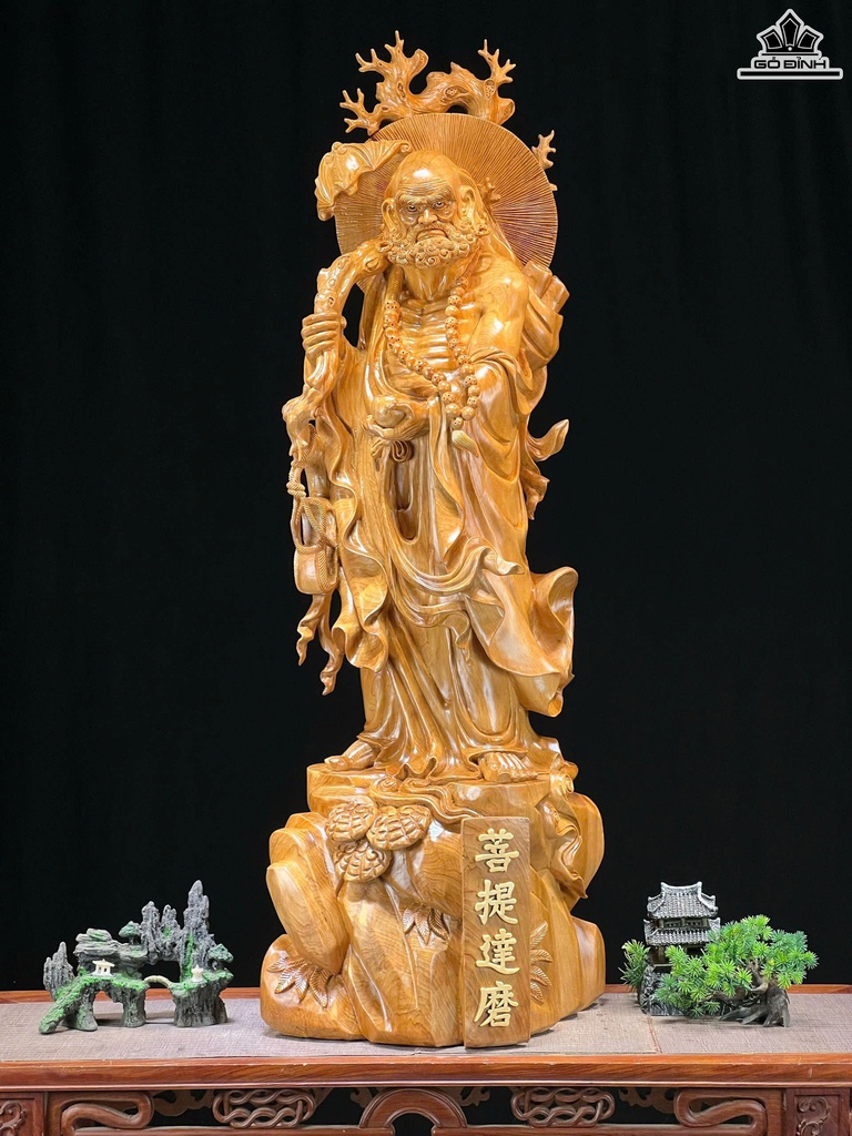 Tượng Đạt Ma Sư Tổ Gỗ Ngọc Am Cao 119 Ngang 41 Sâu 37 (cm)