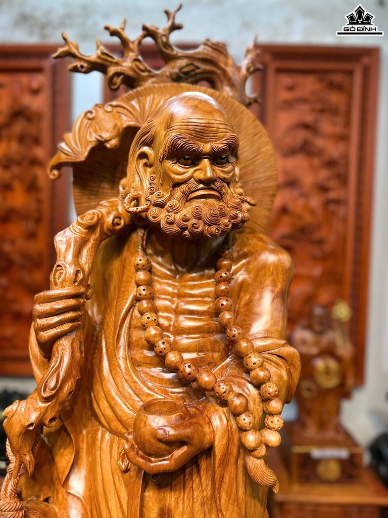 Tượng Đạt Ma Sư Tổ Gỗ Ngọc Am Cao 120 Ngang 32 Sâu 30 (cm)
