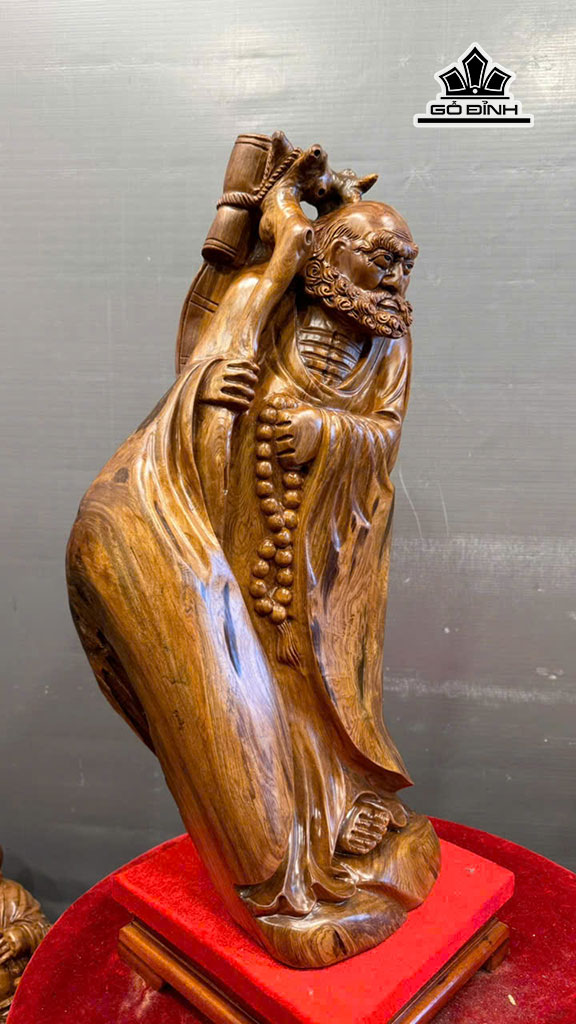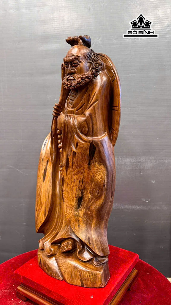 Tượng Đạt Ma Sư Tổ Gỗ Ngọc Am Cao Cả Kỷ 70 Ngang 27 Sâu 18 (cm) - Kỷ Cao 10 (cm) - 12kg