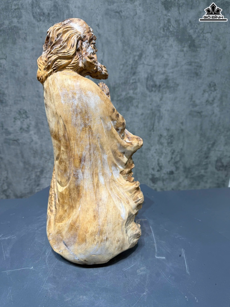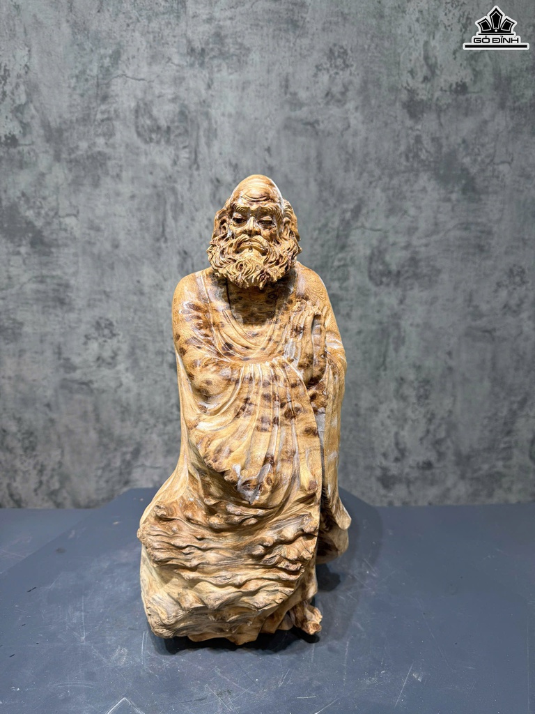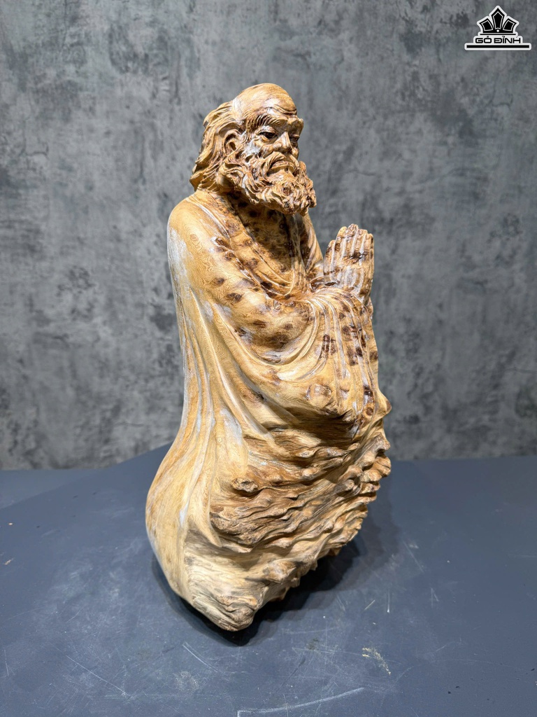 Tượng Đạt Ma Sư Tổ Gỗ Nu Ngọc Am Cao 48 Ngang 23 Sâu 23 (cm)