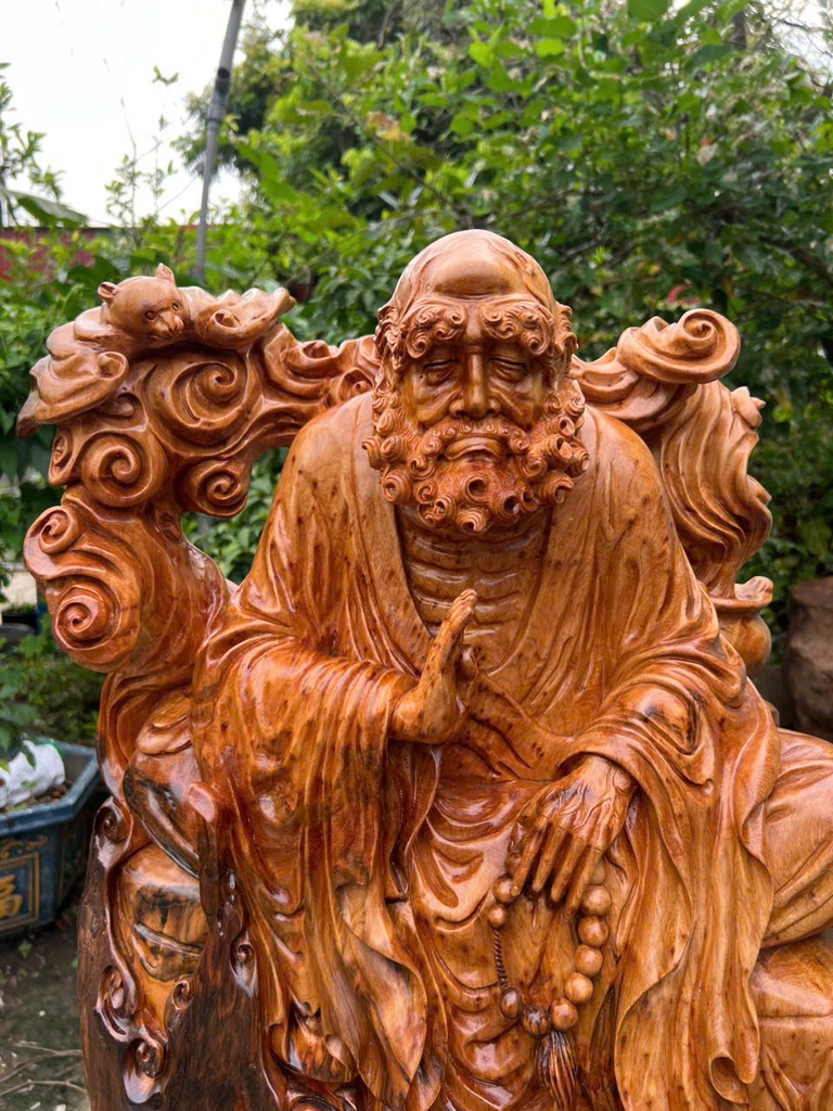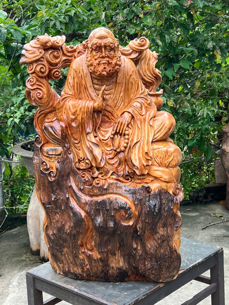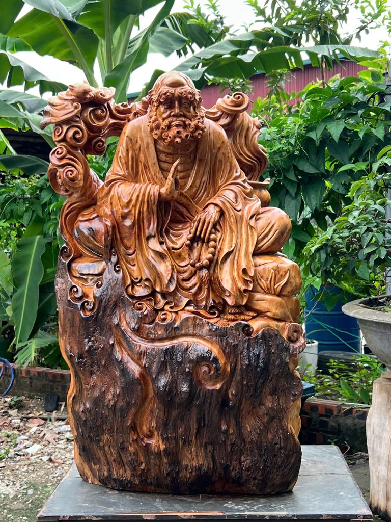 Tượng Đạt Ma Sư Tổ Gỗ Nu Ngọc Am Cao 82 Ngang 50 Sâu 32 (cm)