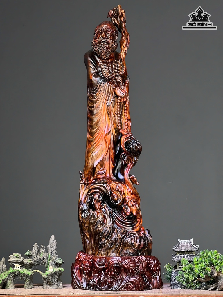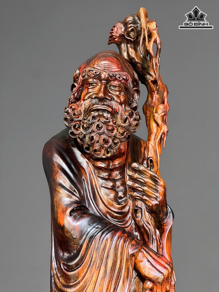 Tượng Đạt Ma Sư Tổ Gỗ Nu Trắc Cao 93 Ngang 28 Sâu 28 (cm) - KT Không Đế 84x24x22 (cm)