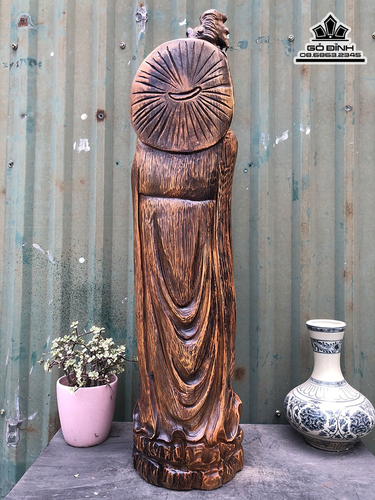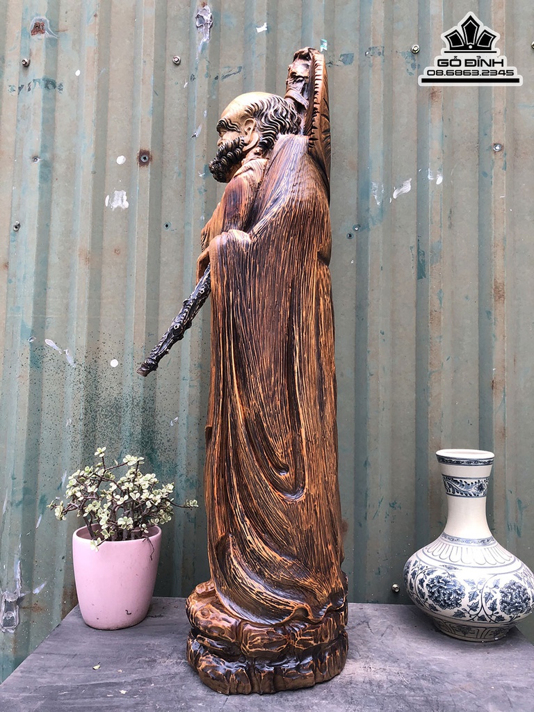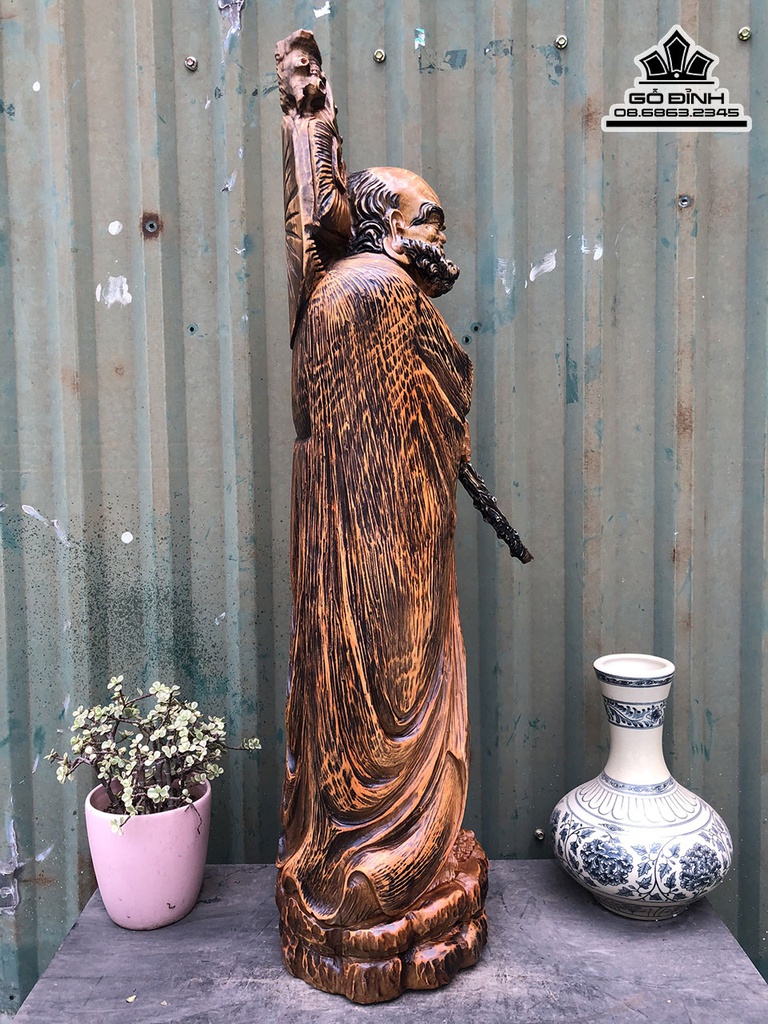 Tượng Đạt Ma Sư Tổ Gỗ Pơ Mu Cao 83 Ngang 22 Sâu 22 (cm)