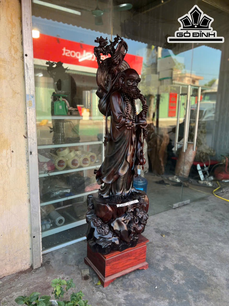 Tượng Đạt Ma Sư Tổ Gỗ Trắc Cao 150 Ngang 50 Sâu 30 (cm)