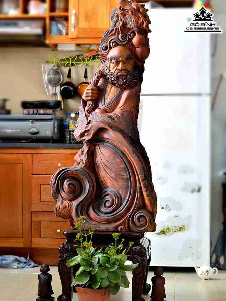 Tượng Đạt Ma Sư Tổ Gỗ Xá Xị Cao 116 Ngang 50 Sâu 30 (cm)