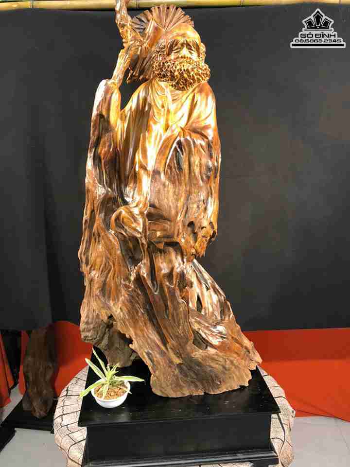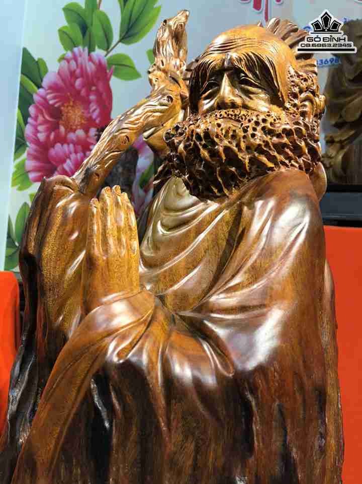 Tượng Đạt Ma Sư Tổ Gỗ Xá Xị ( Gù Hương ) Cao 110 Ngang 60 Sâu 32 (cm)