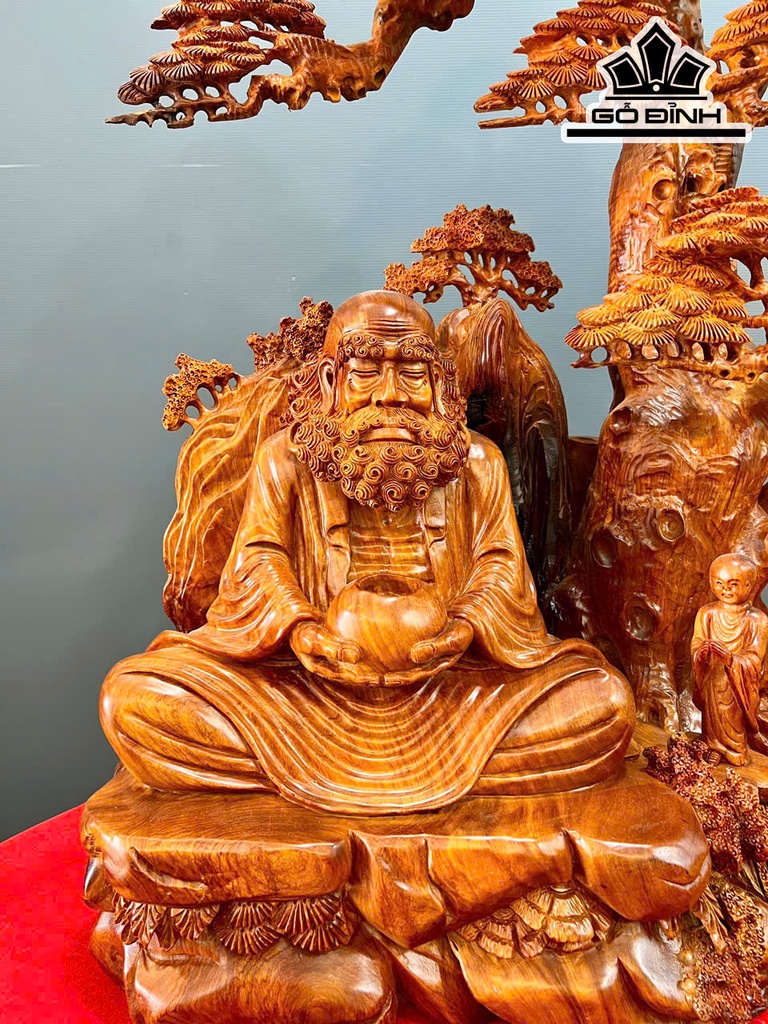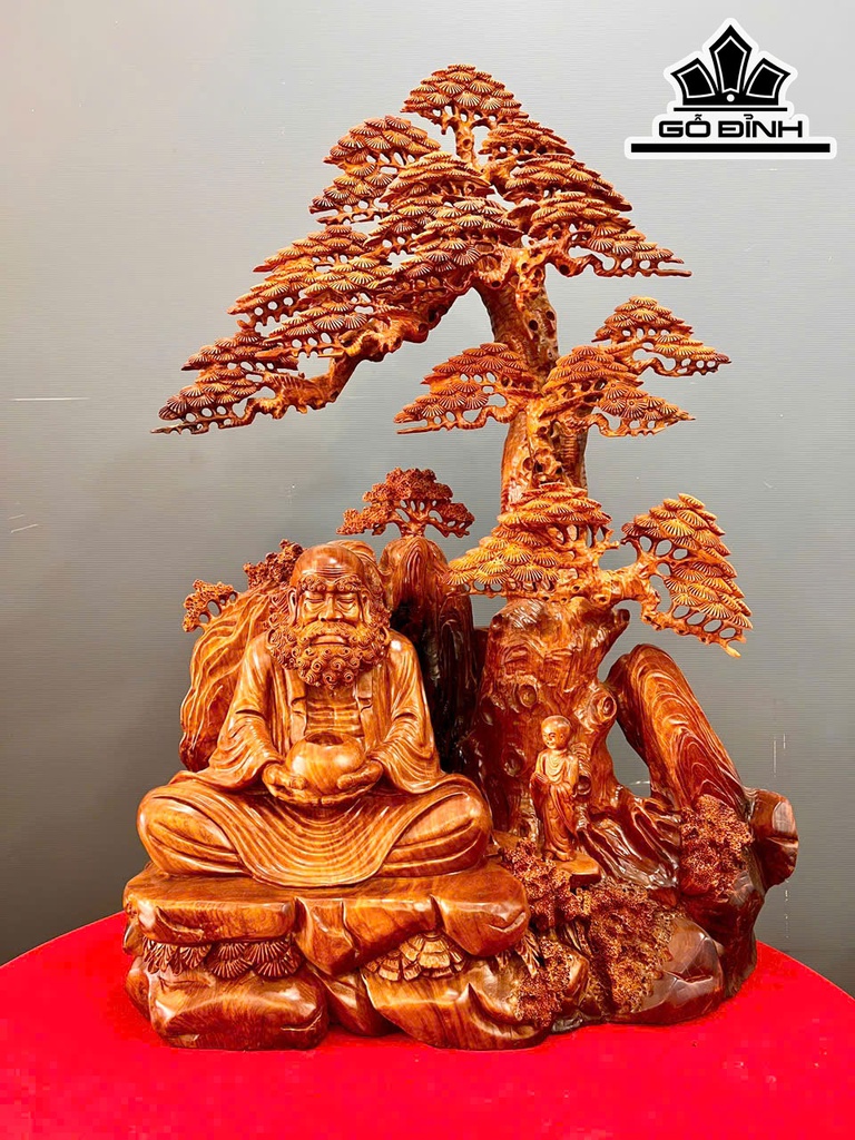 Tượng Đạt Ma Sư Tổ Ngự Gốc Tùng Gỗ Hương Cao 100 Ngang 65 Sâu 35 (cm)