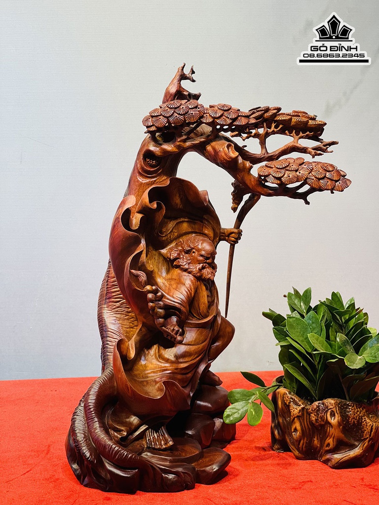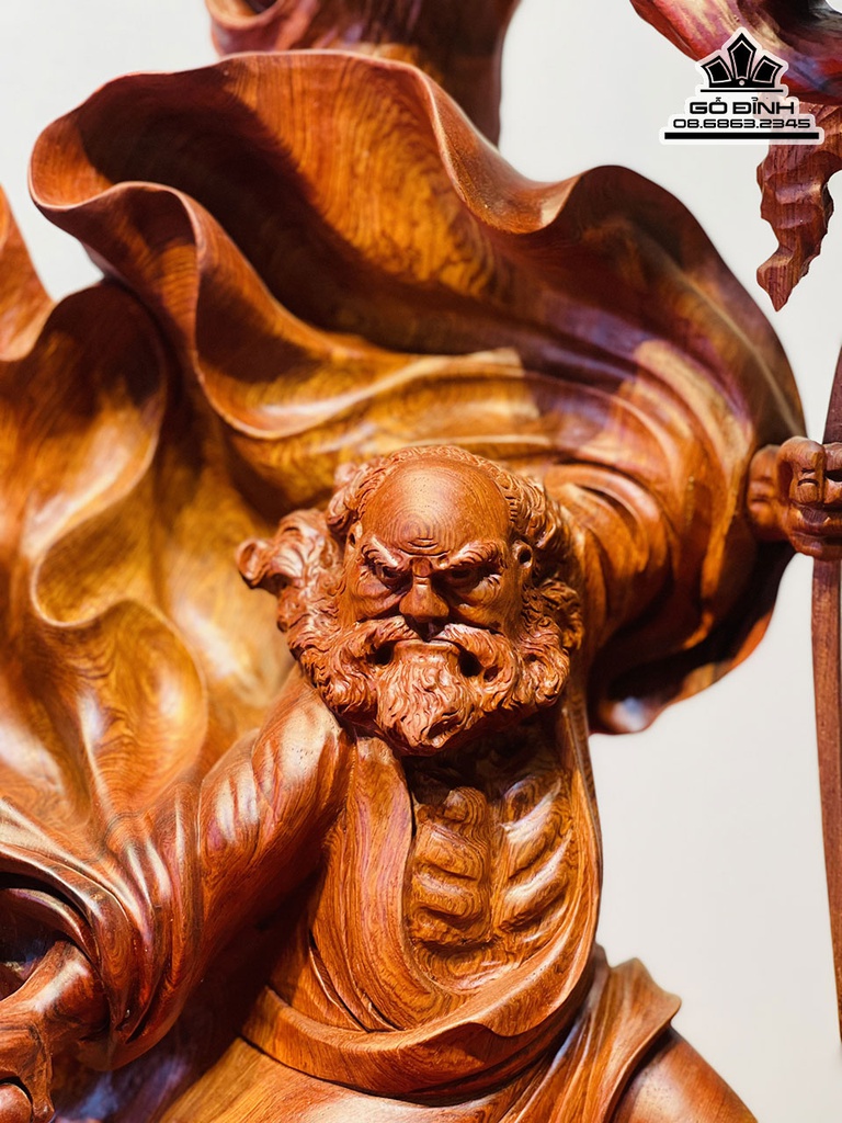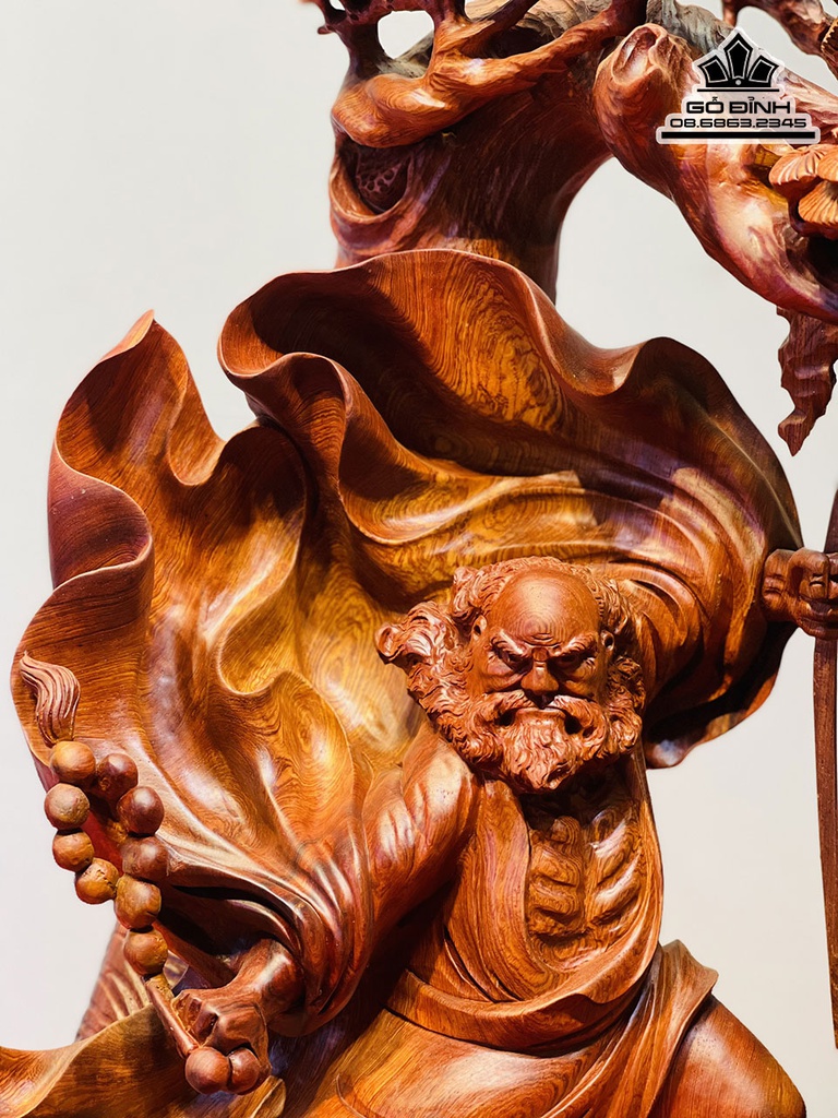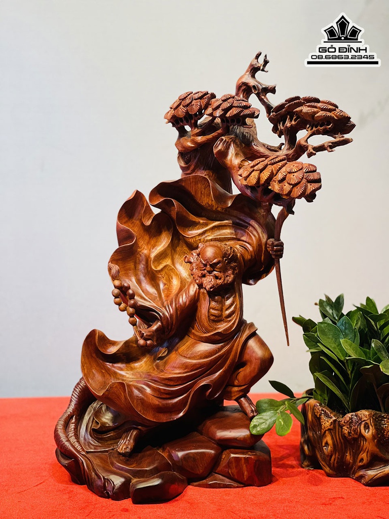 Tượng Đạt Ma Sư Tổ Xuất Quyền Gỗ Hương Cao 62 Ngang 42 Sâu 38 (cm)