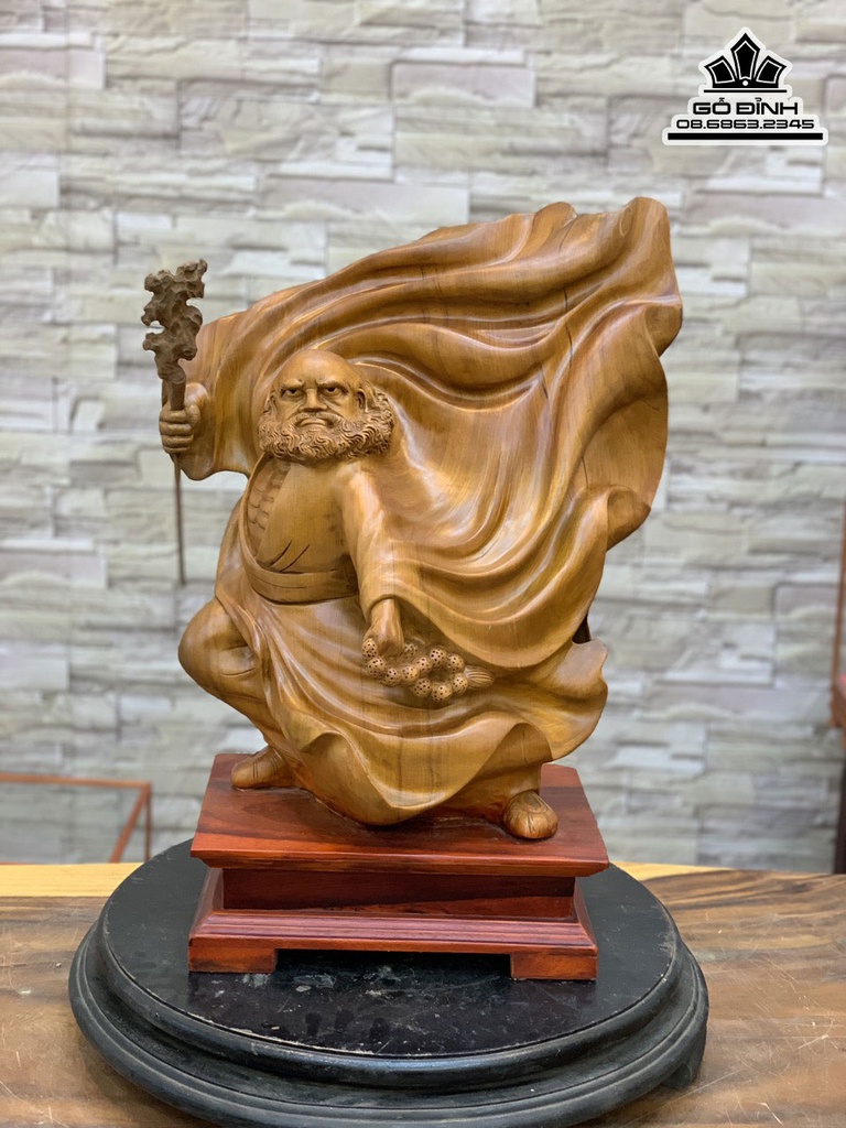 Tượng Đạt Ma Sư Tổ Xuất Quyền Gỗ Ngọc Am Cao 50 Ngang 44 Sâu 35 (cm)