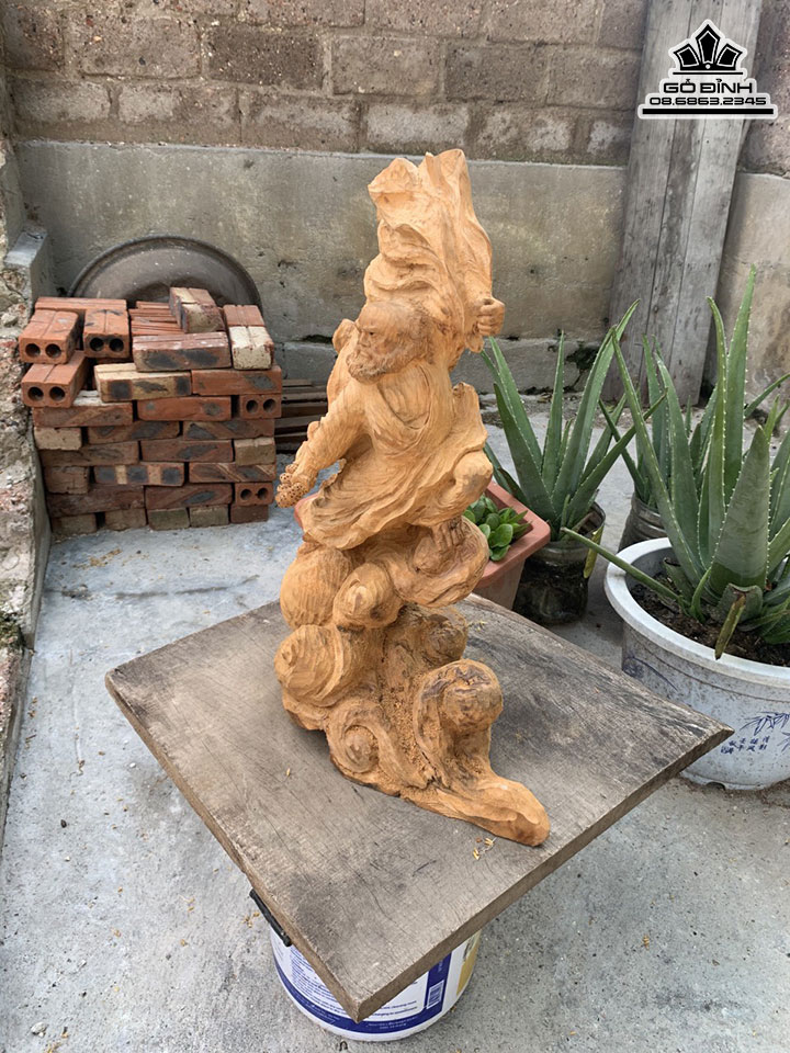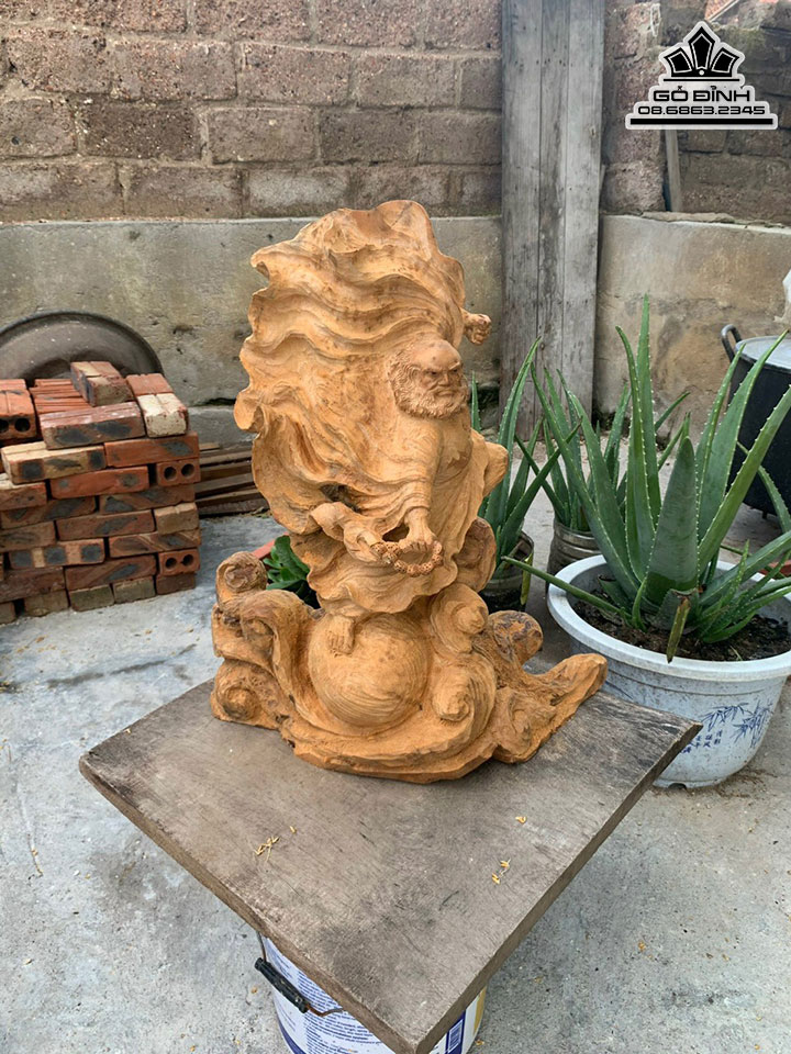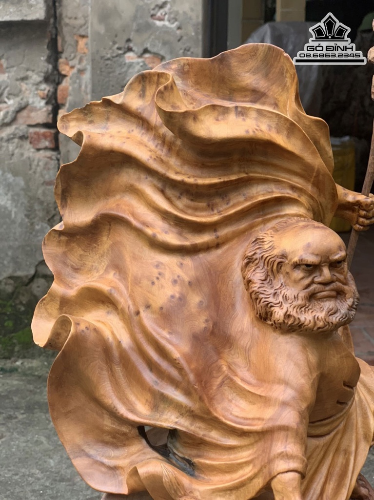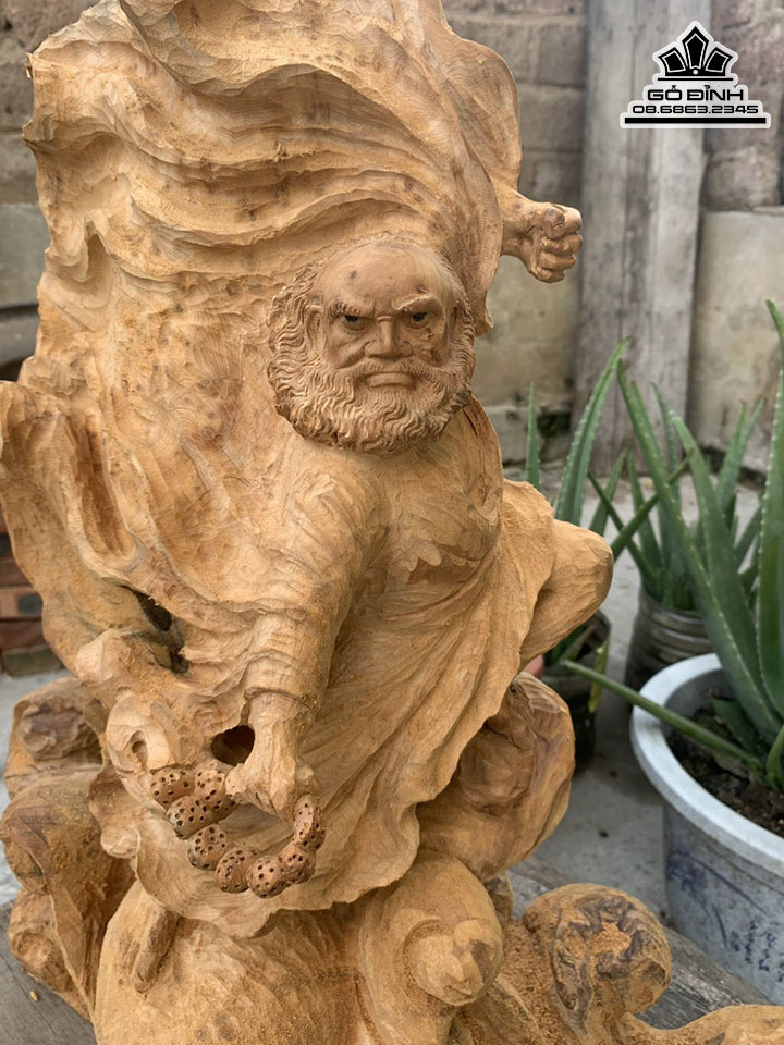 Tượng Đạt Ma Sư Tổ Xuất Quyền Gỗ Ngọc Am Cao 55 Ngang 48 Sâu 20 (cm)