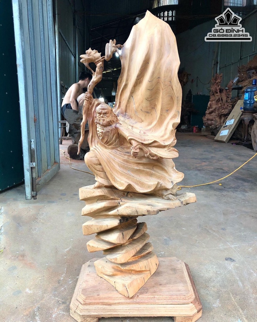 Tương Đạt Ma Sư Tổ Xuất Quyền Gỗ Ngọc Am Cao 90 Ngang 35 Sâu 27 (cm)