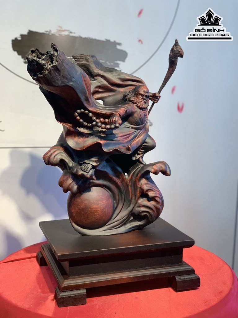 Tượng Đạt Ma Sư Tổ Xuất Quyền Gỗ Trắc Cao 42 Ngang 38 Sâu 30 Cả Kỷ 52 (cm)