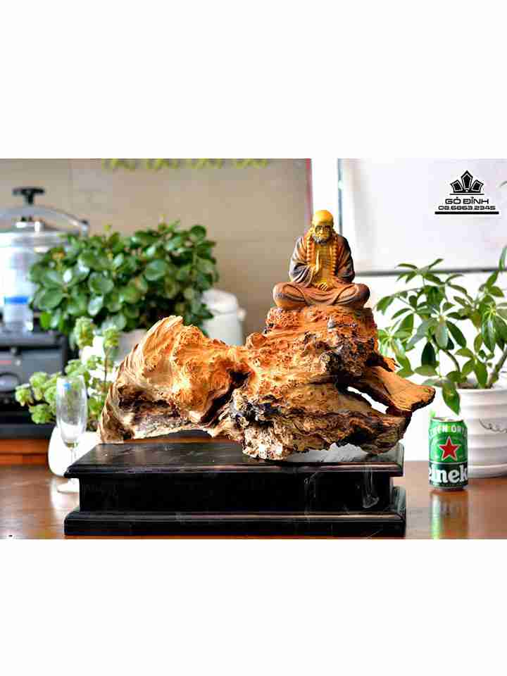 Tượng Đạt Ma Thiền Gỗ Bách Xanh Và Cẩm Ngang 52 Cao 46 Dày 20 (cm) Cả Kỷ