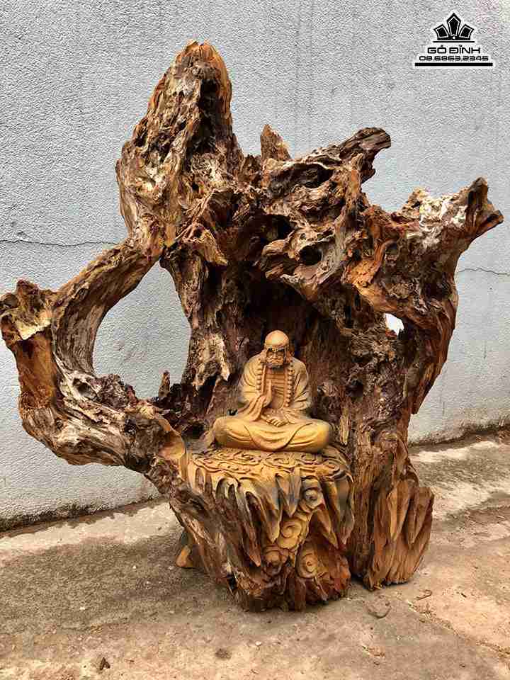 Tượng Đạt Ma Thiền gỗ lũa bách xanh cao 76 rộng 52 dày 32 (cm)