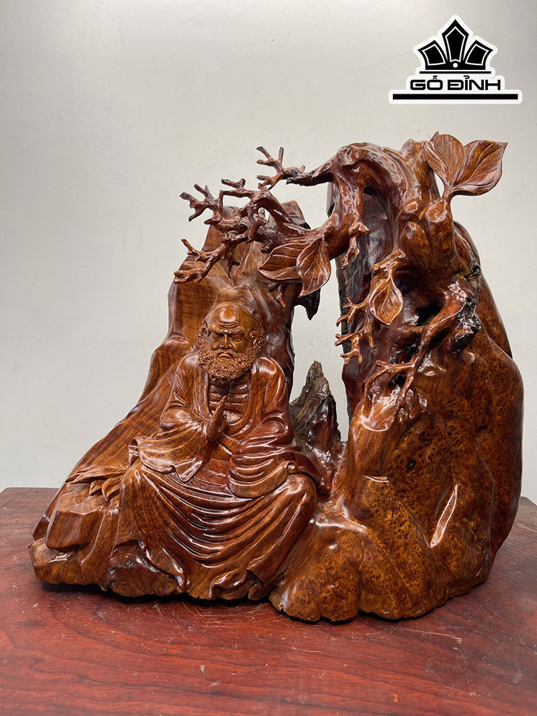 Tượng Đạt Ma Thiền Gỗ Nu Hương Cao 30 Ngang 34 Sâu 16 (cm)