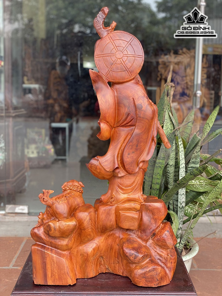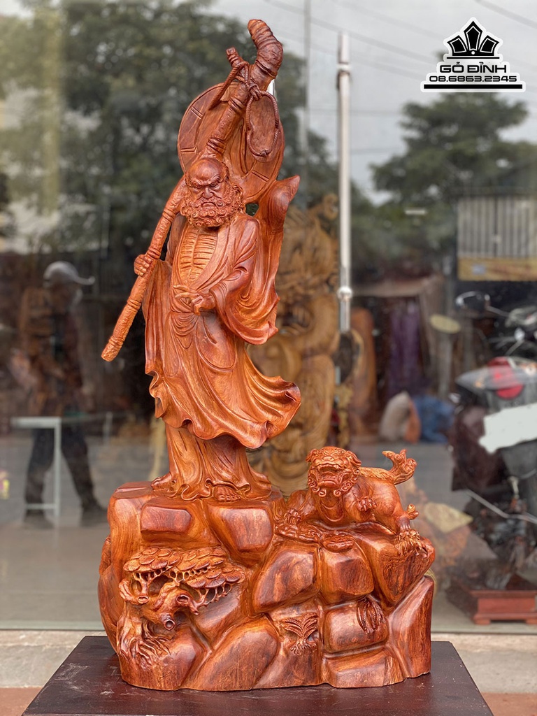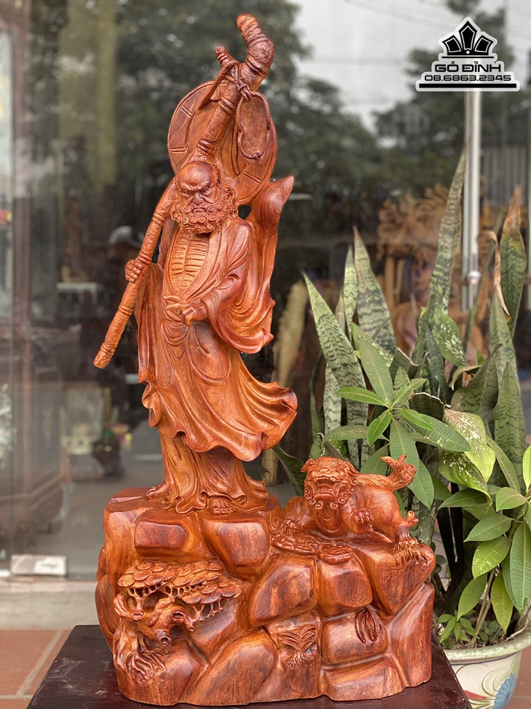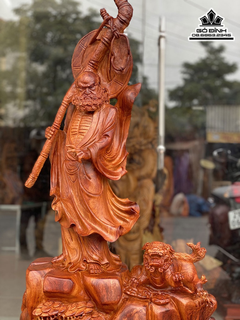 Tượng Đạt Ma Thuần Nghê Gỗ Hương Việt Cao 100 Rộng 55 Sâu 30 (cm)