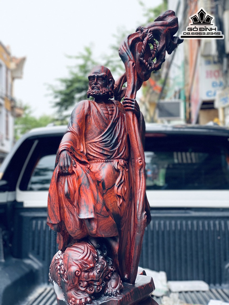 Tượng Đạt Ma Thuần Nghê Gỗ Trắc Việt Cao 92 Ngang 24 Sâu 30 (cm)