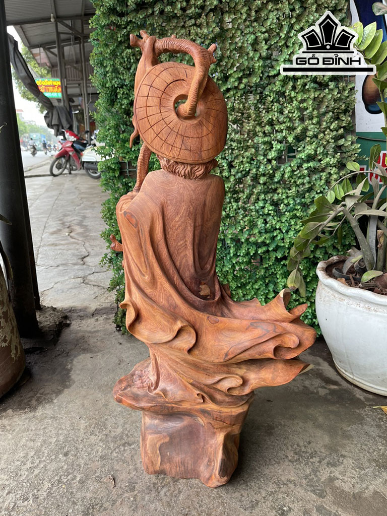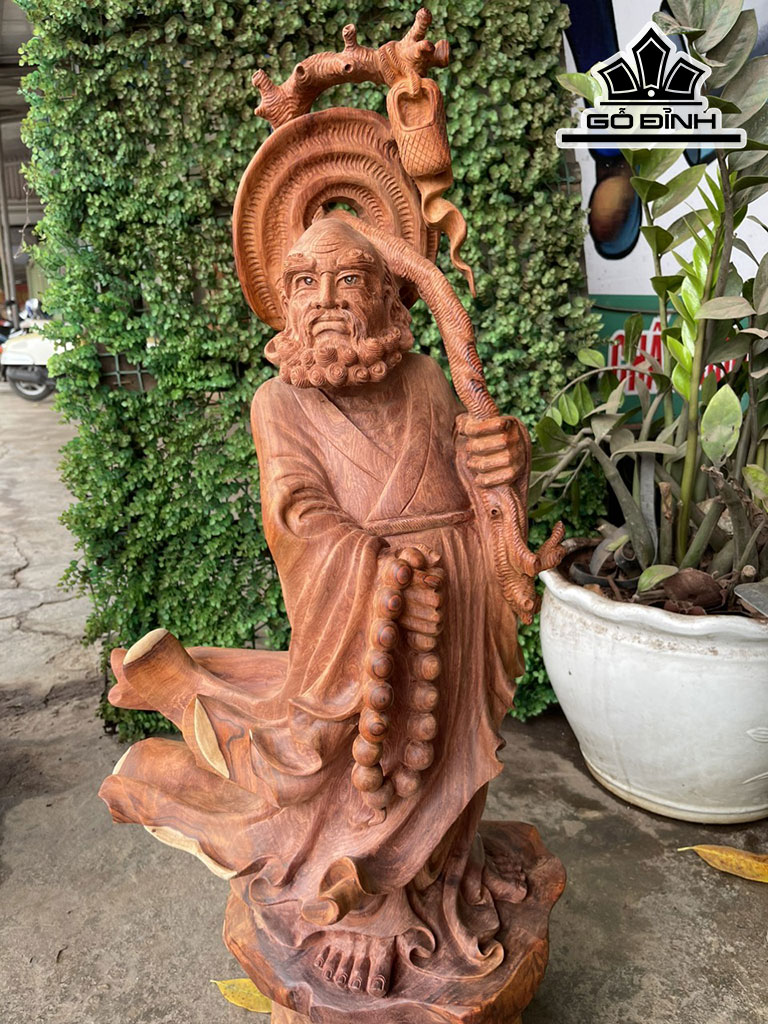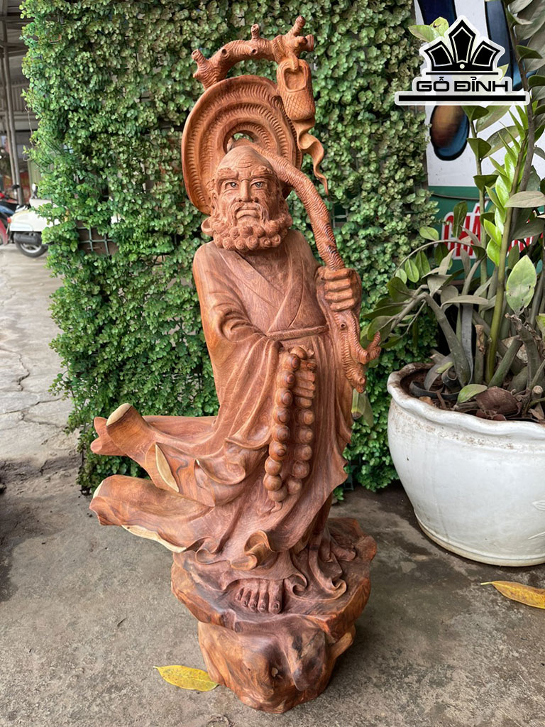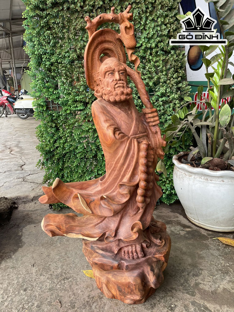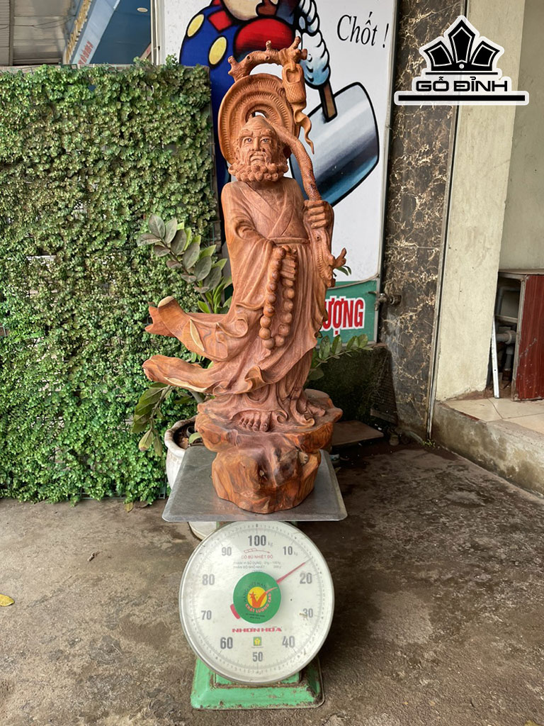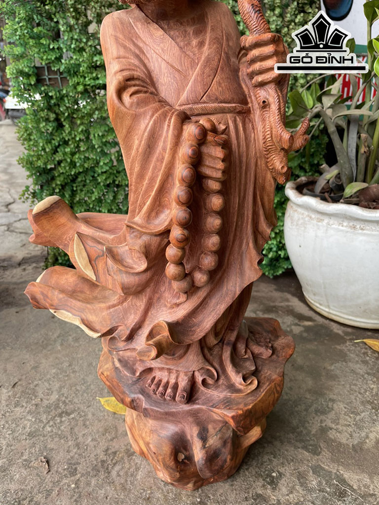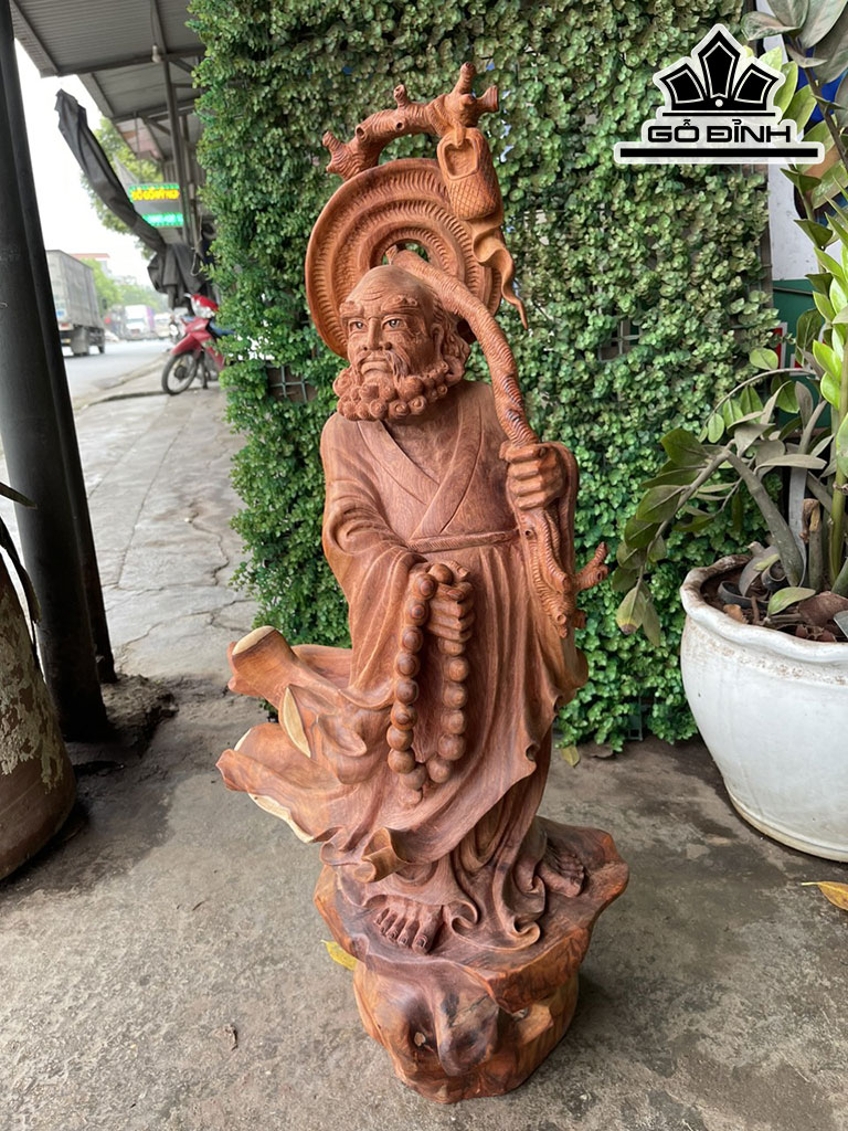 Tượng Đạt Ma Truyền Giáo Gỗ Hương Cao 79 Ngang 40 Sâu 23 (cm)