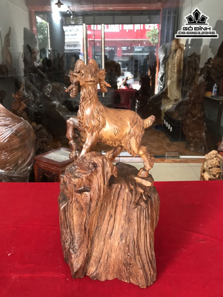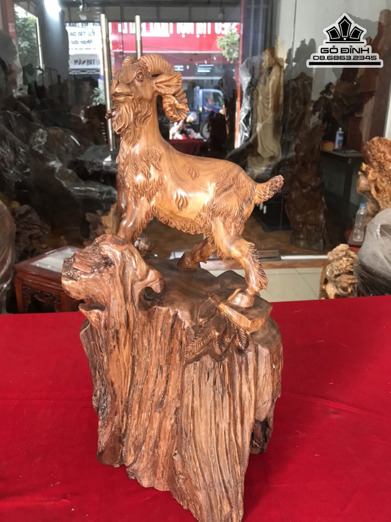 Tượng Dê Gỗ Bách Xanh Cao 48 ngang 25 Sâu 22 (cm)
