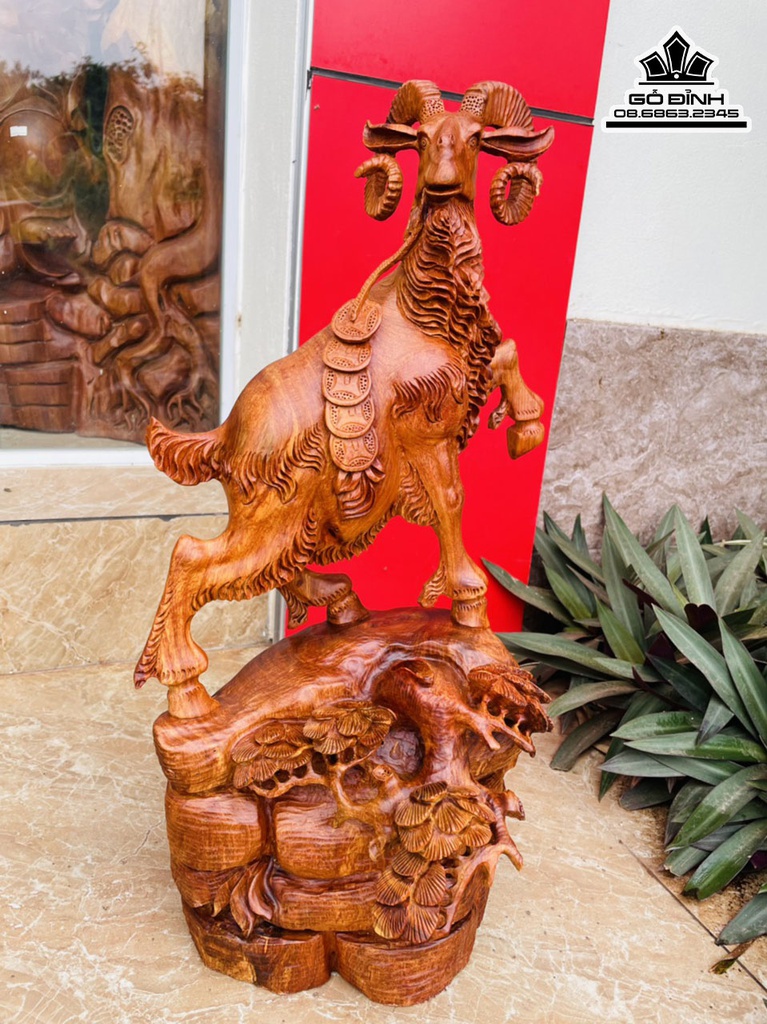 Tượng Dê Gỗ Hương Việt Cao 55 Ngang 29 Sâu 25 (cm)