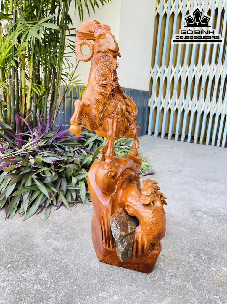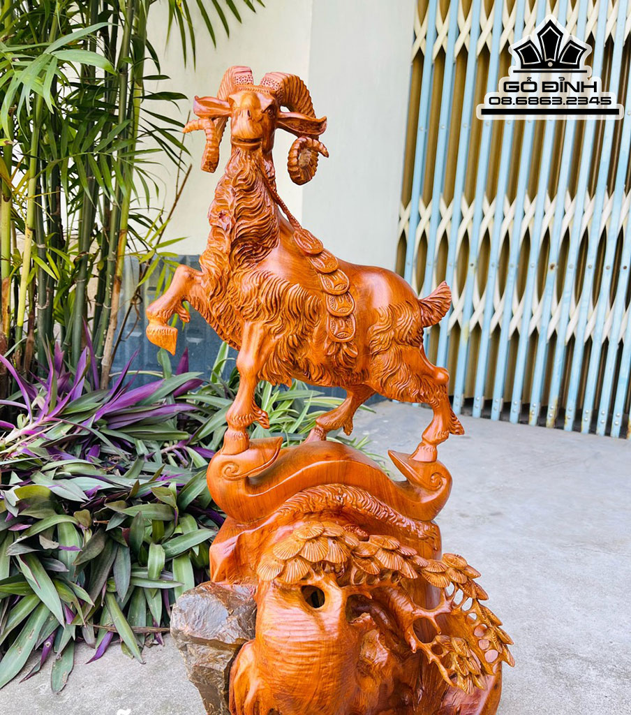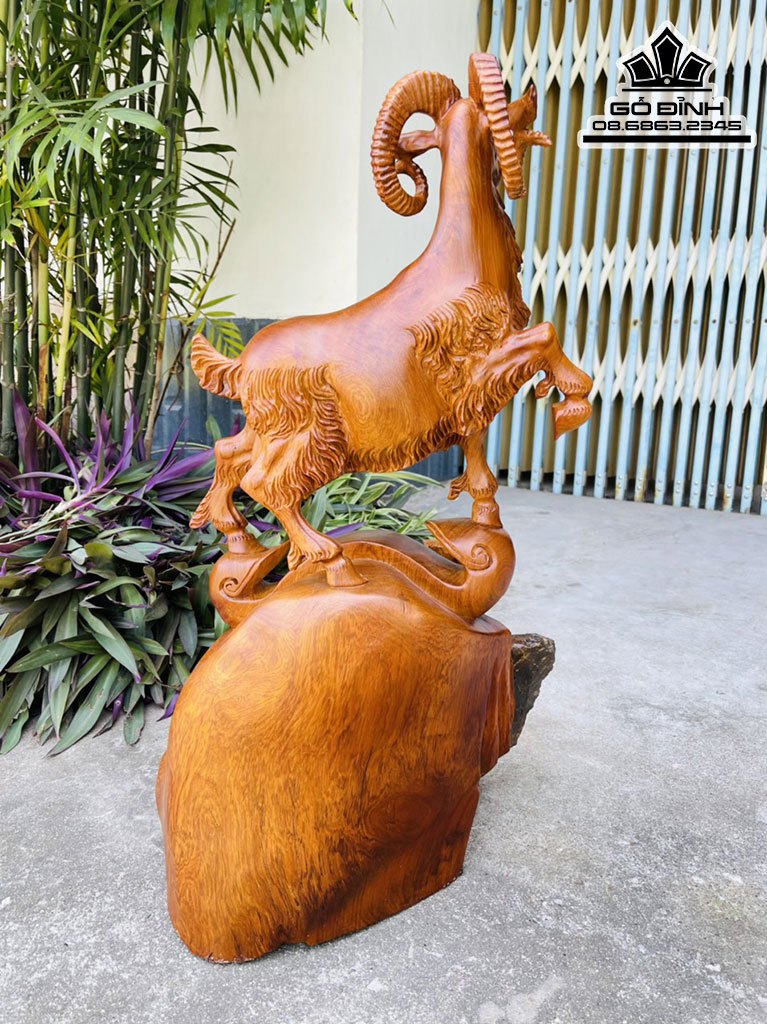 Tượng Dê Phong Thủy Đứng Gốc Tùng Gỗ Hương Cao 60 Ngang 33 Sâu 22 (cm)
