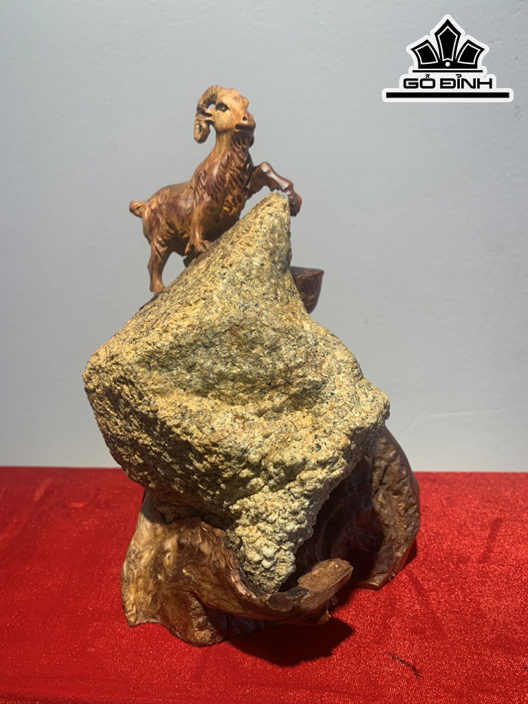 Tượng Dê Phong Thủy Gỗ Hương Cao 24 Ngang 14 Sâu 14 (cm)