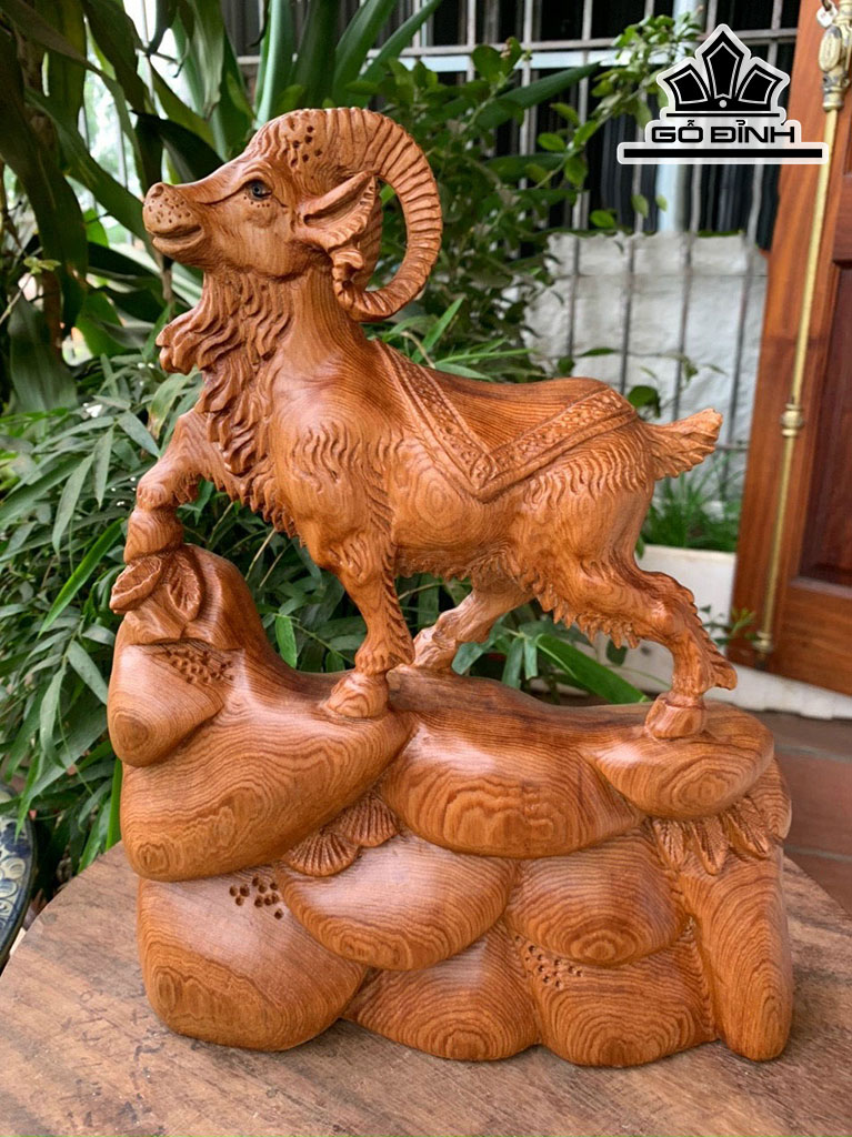 Tượng Dê Phong Thủy Gỗ Hương Cao 36 Ngang 28 Sâu 8 (cm)