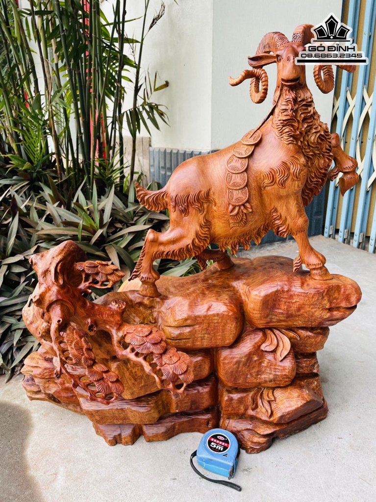 Tượng Dê Phong Thủy Gỗ Hương Cao 70 Ngang 62 Sâu 45 (cm)