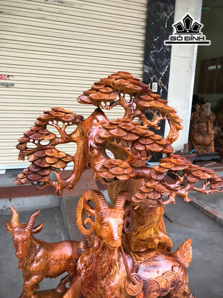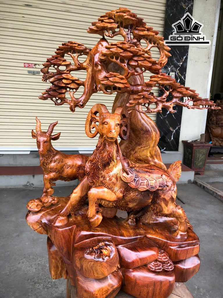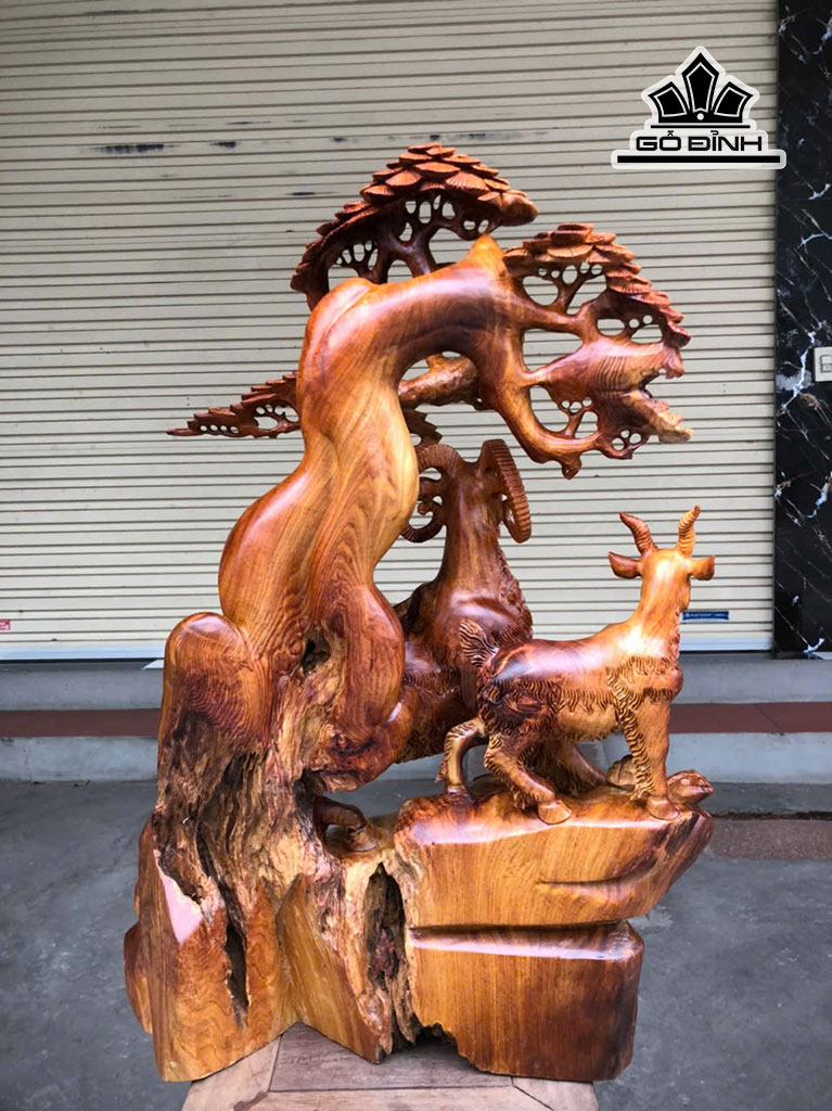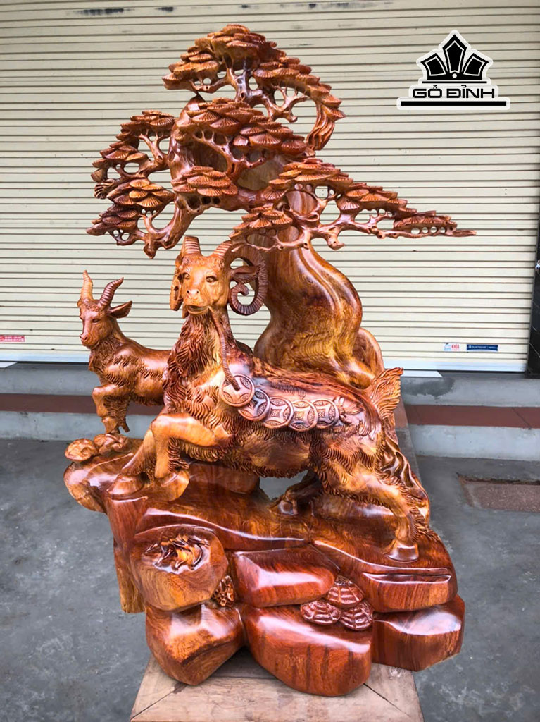 Tượng Dê Phong Thủy Gỗ Hương Cao 80 Ngang 56 Sâu 25 (cm)